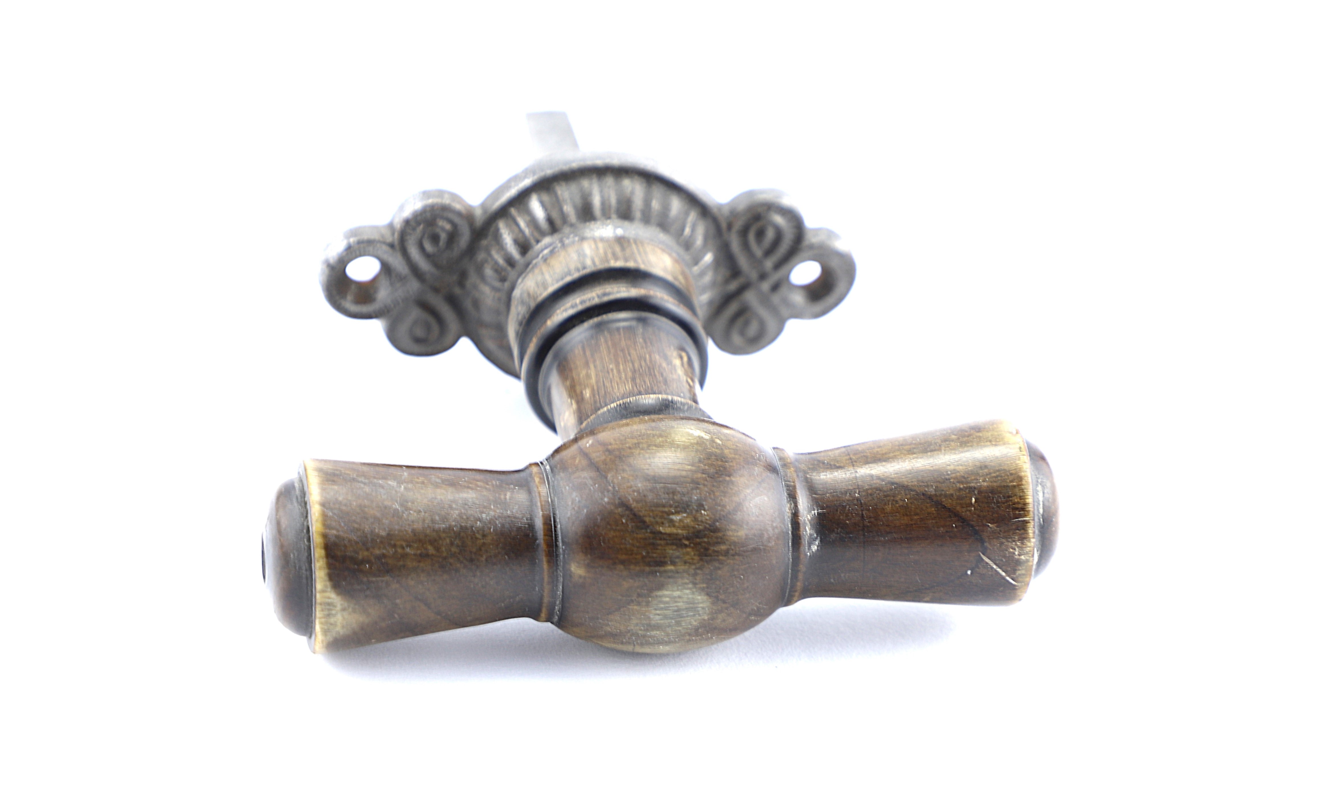 Diese Fensteroliven werden mit einer passenden 43 mm Fußplattenrosette und M 5 Linsen/Schlitz Gewindeschrauben versendet. Ein 7 mm Vierkantstift wird eingepasst.