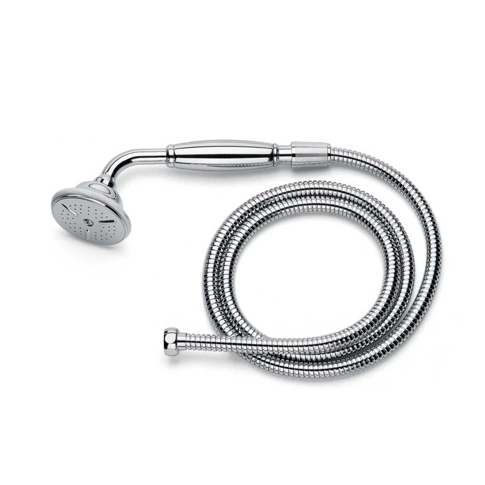 Diese Duscharmaturen stammen aus unserer Kreuzgriffserie aus gegossenem Messing. Wir koppeln sie hier aus, weil die ganzmetallenen, und völlig zerlegbaren Handduschen (mit oder ohne Porzellangriff) und die feinperforierten Kopfduschen sich mit ihren Normanschlüssen natürlich auch einzeln in bestehende Installationen einbinden lassen.
