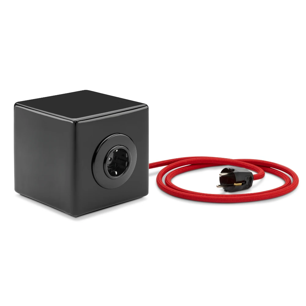 Produktinformationen "12867.1 PS THPG-Stromwürfel aus schwarzen Porzellan mit 2 Steckdosen und rotem Kabel"