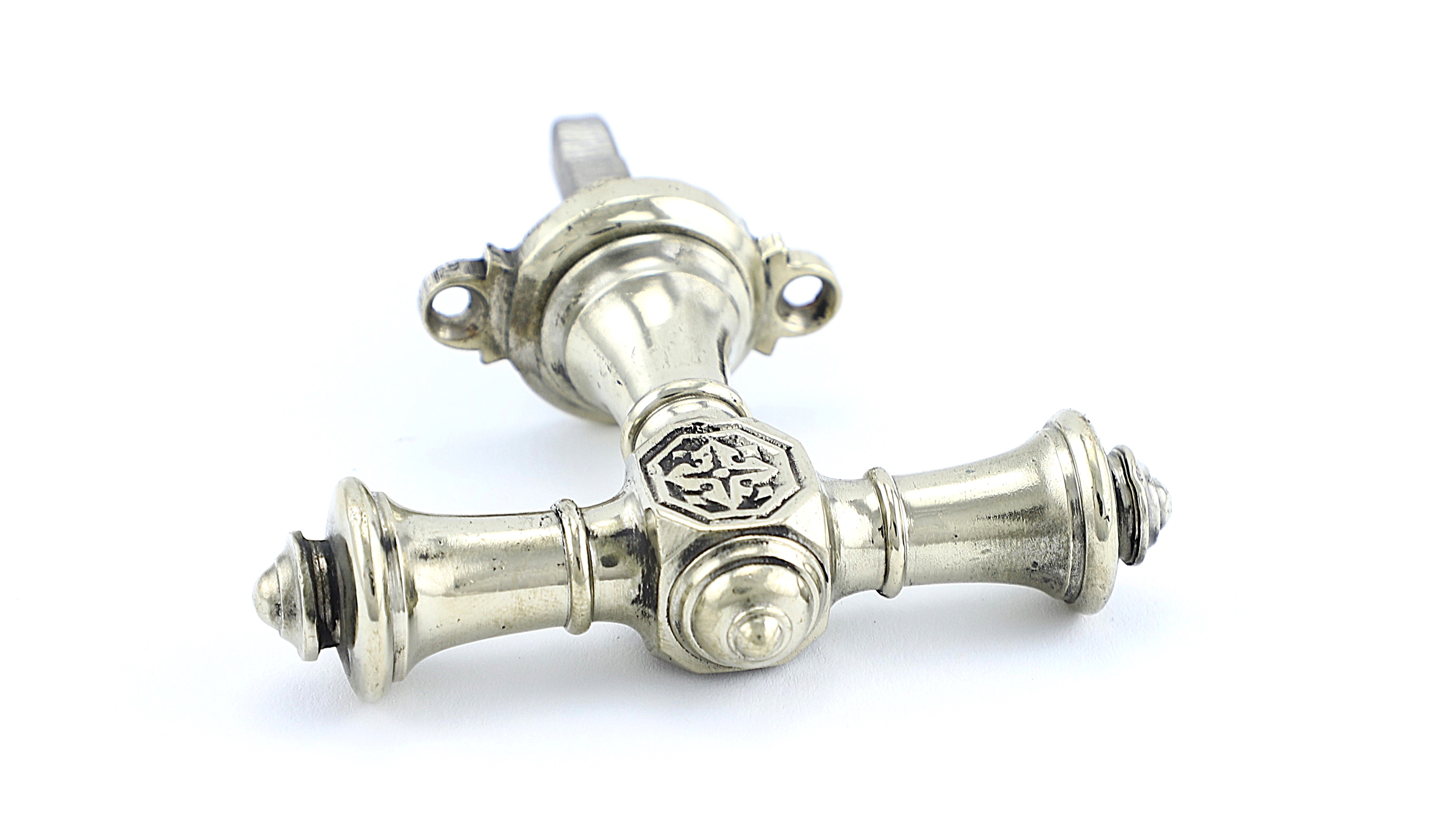Diese Fensteroliven werden mit einer passenden 38 mm Fußplattenrosette und M 5 Linsen/Schlitz Gewindeschrauben versendet. Ein 7 mm Vierkantstift wird eingepasst.