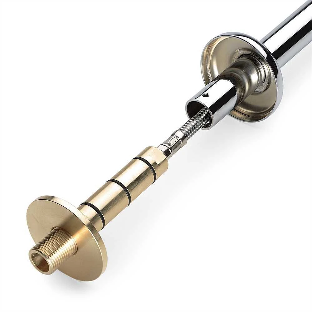Die Steckverbindung hat ein 1/2"-Gewinde zur Bodeninstallation, am oberen Ende werden die wasserführenden Edelstahl-Flexschläuche angeschraubt.