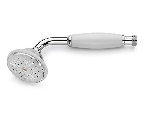 Die Handduschen aus unseren Armaturen- Serien sind „old fashioned“, und zwar nicht nur auf den ersten Blick: Sie sind vollständig aus verchromtem Messing (mit einer Stoßsicherung aus Gummi), bis zum letzten Teil demontierbar und daher leicht im Essigbad zu entkalken.