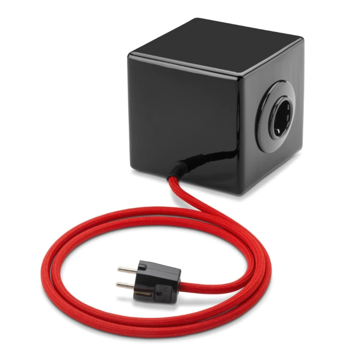 Produktinformationen "12867.1 PS THPG-Stromwürfel aus schwarzen Porzellan mit 2 Steckdosen und rotem Kabel"