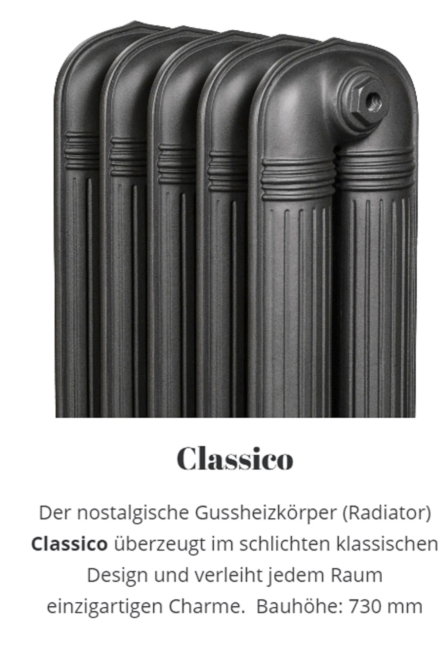 Der Gussheizkörper "CLASSICO" ist das Highlight für jeden Liebhaber des klassischen Designs. Durch klare Linienführung in Verbindung mit gusseisernem Material verleihen die Modelle der Serie "CLASSICO" jedem Raum ein einzigartiges nostalgisches Flair.