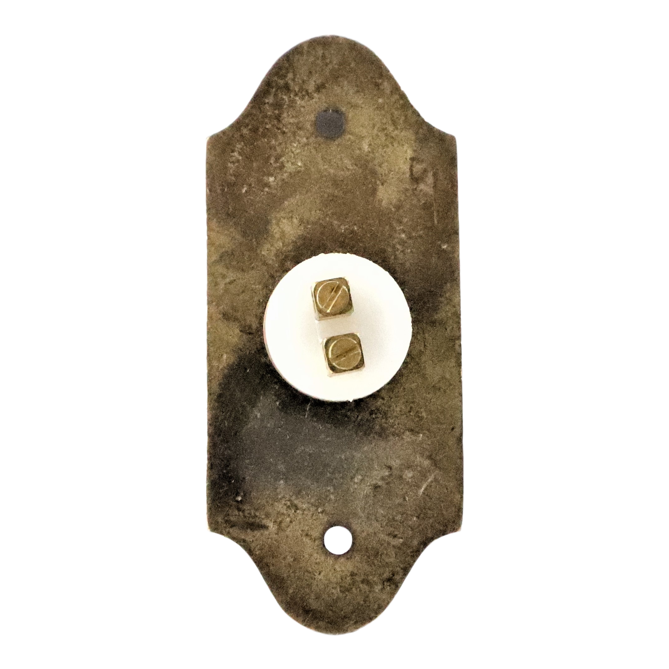 Geschwungene Muster verzieren diese patinierte, längliche Klingel.