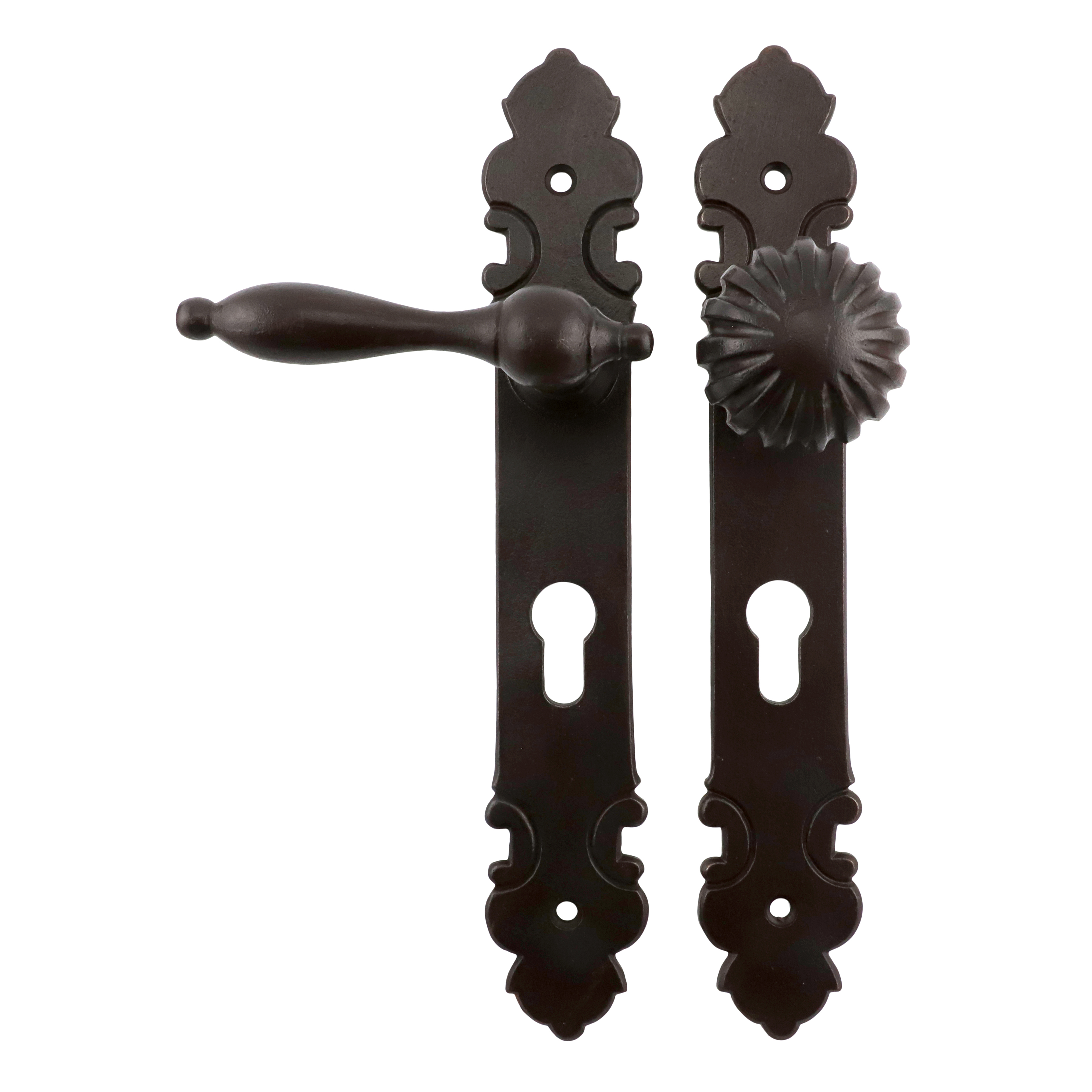 Produktinformationen "312.0008.60 Haustür-Garnitur Türgriffe mit Knauf Eisen antik Biedermeier PZ 72 mm"