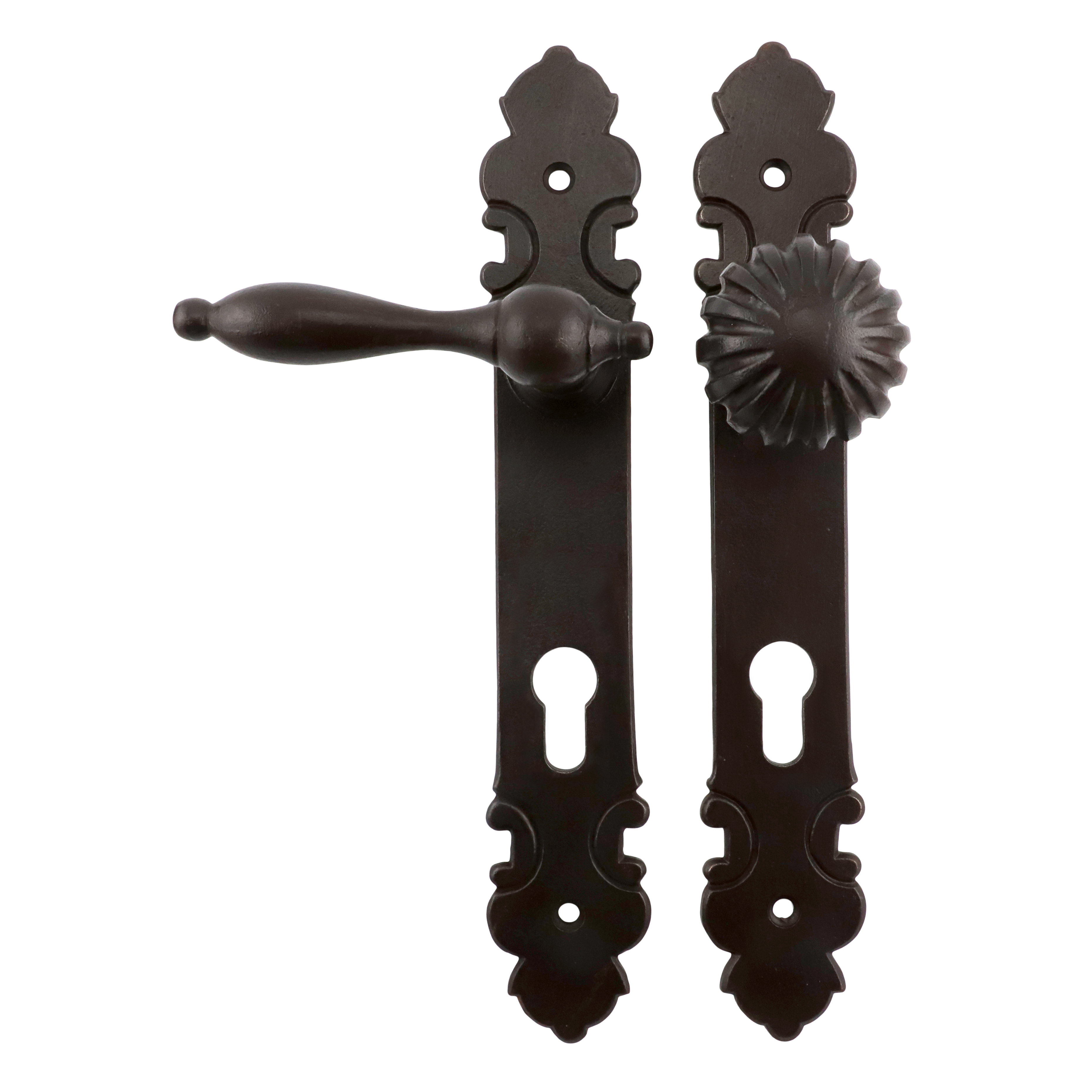 Produktinformationen "312.0008.60 Haustür-Garnitur Türgriffe mit Knauf Eisen antik Biedermeier PZ 92 mm"