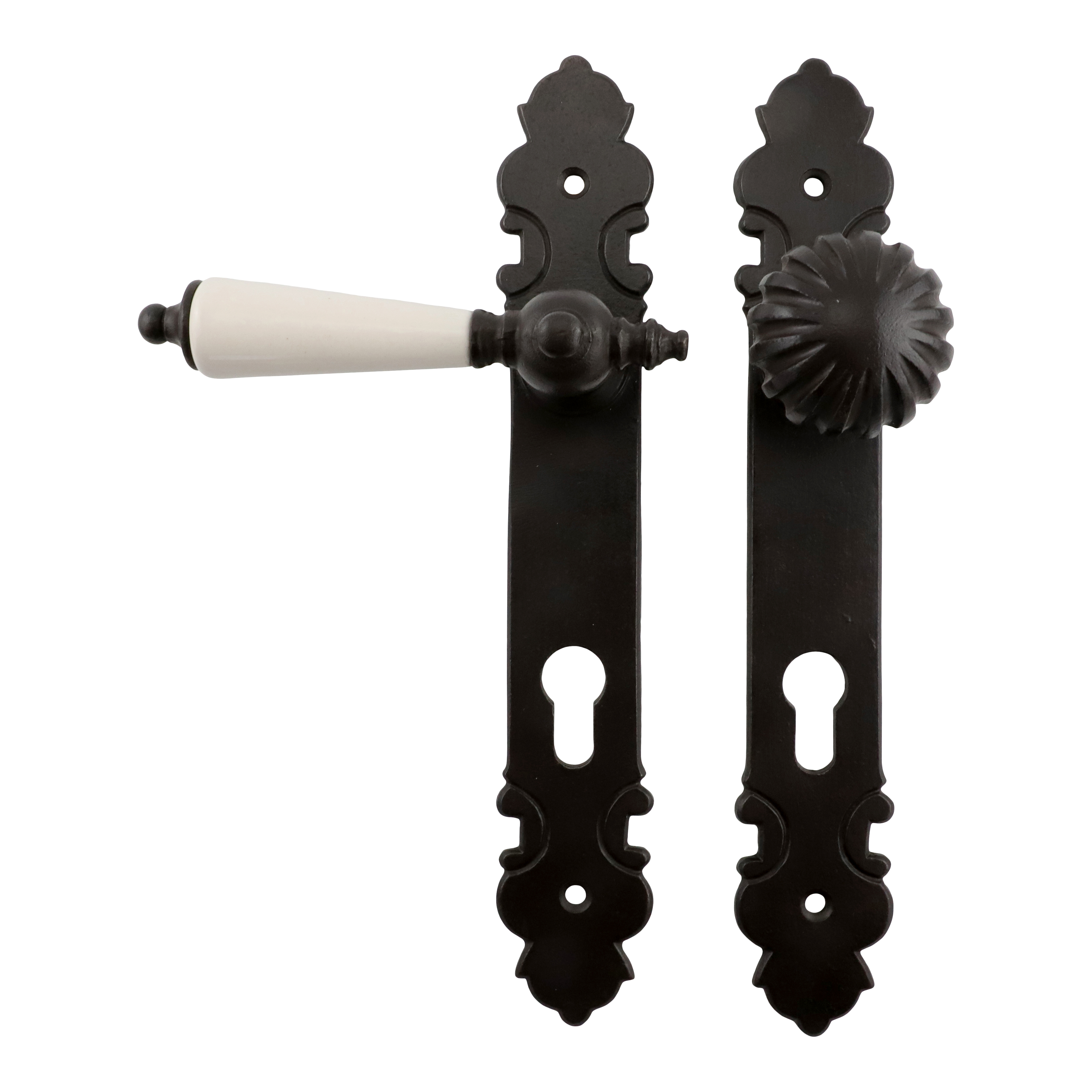 312.0031.60 Haustür-Garnitur Türgriffe mit Knauf Eisen antik Historismus DIN rechts