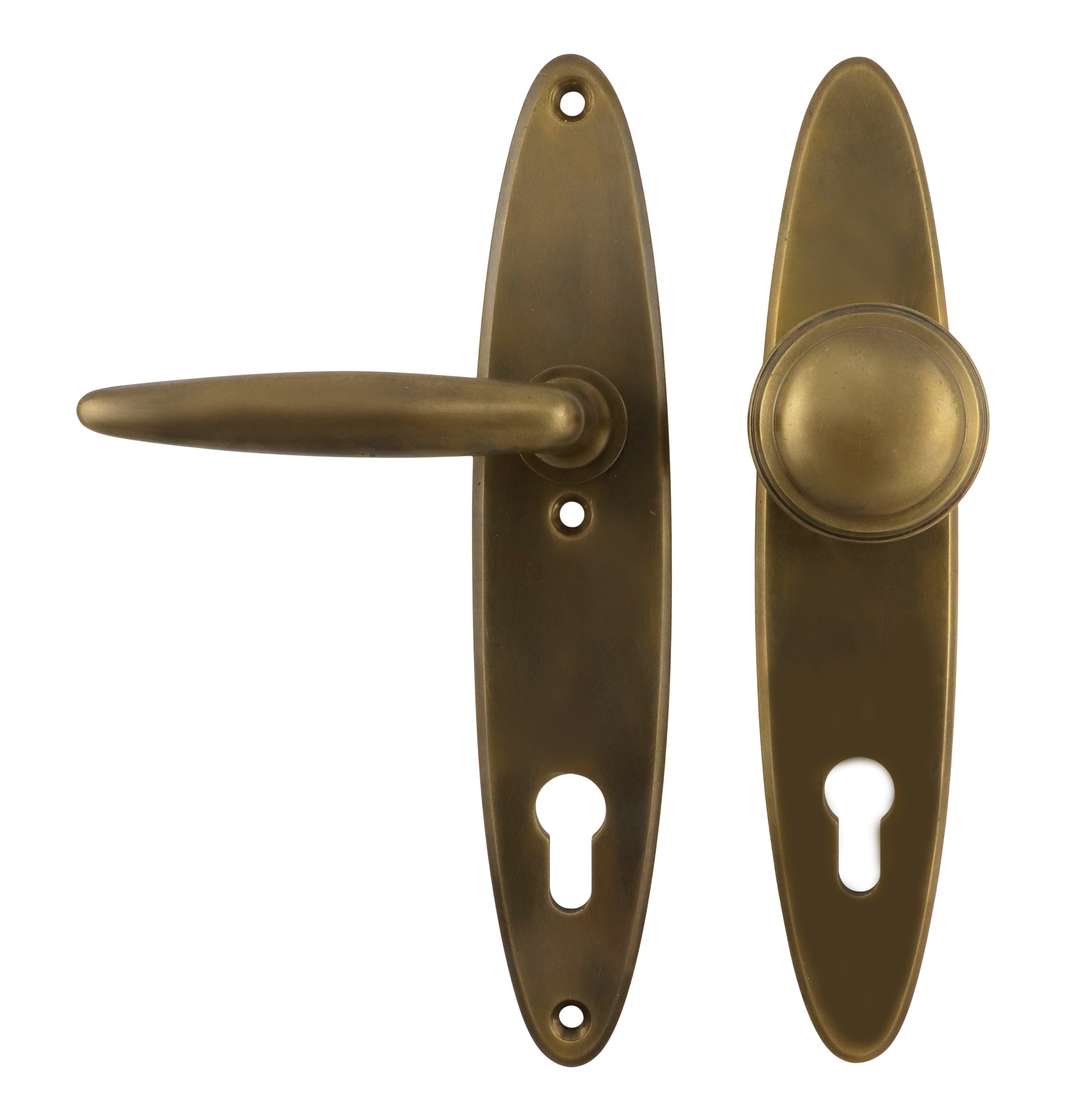 312.0032.45 Haustür-Garnitur Türgriffe mit Knauf Messing patiniert 20er Jahre Stil