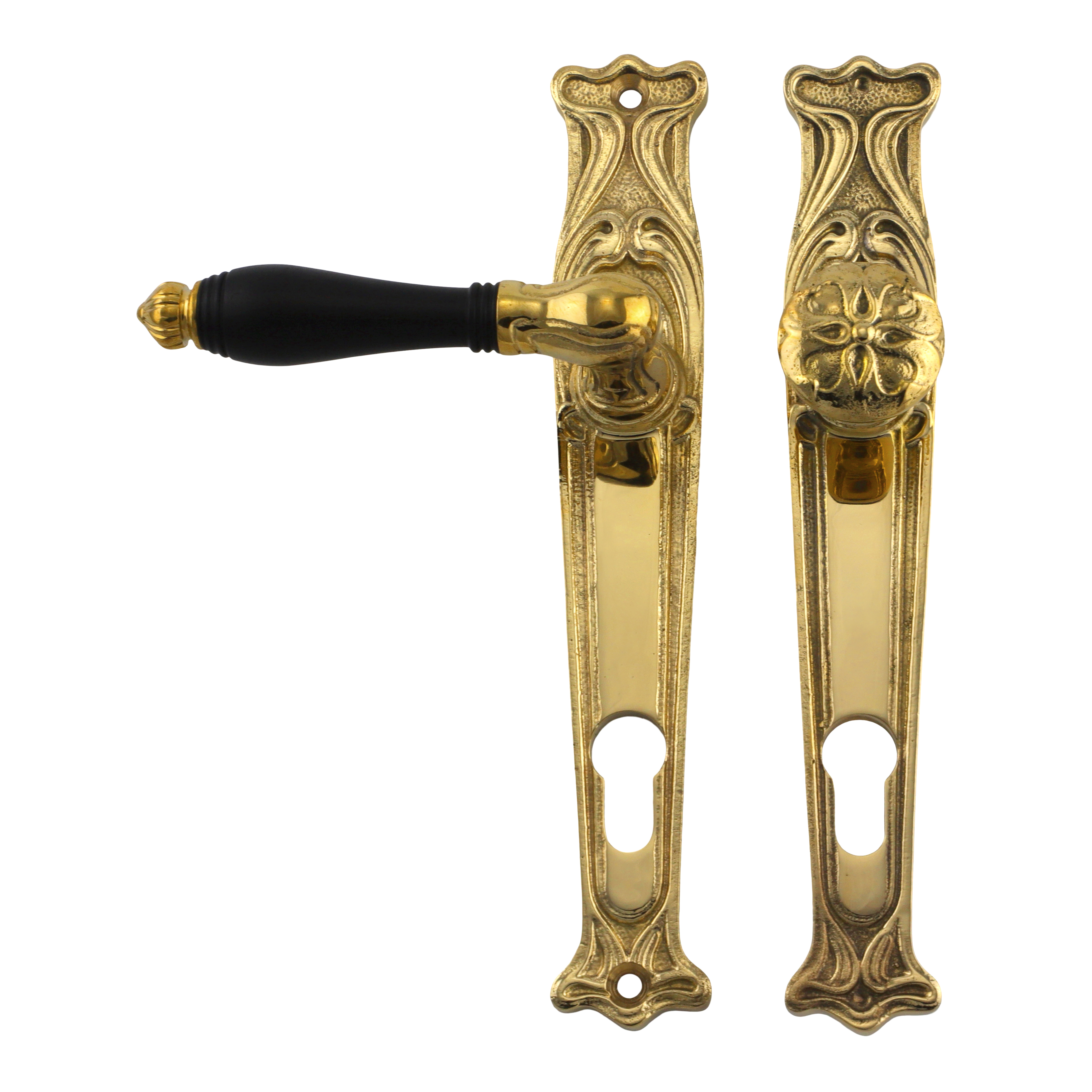 312.0046.35 Haustür-Garnitur Türgriffe mit Knauf Messing poliert Jugendstil