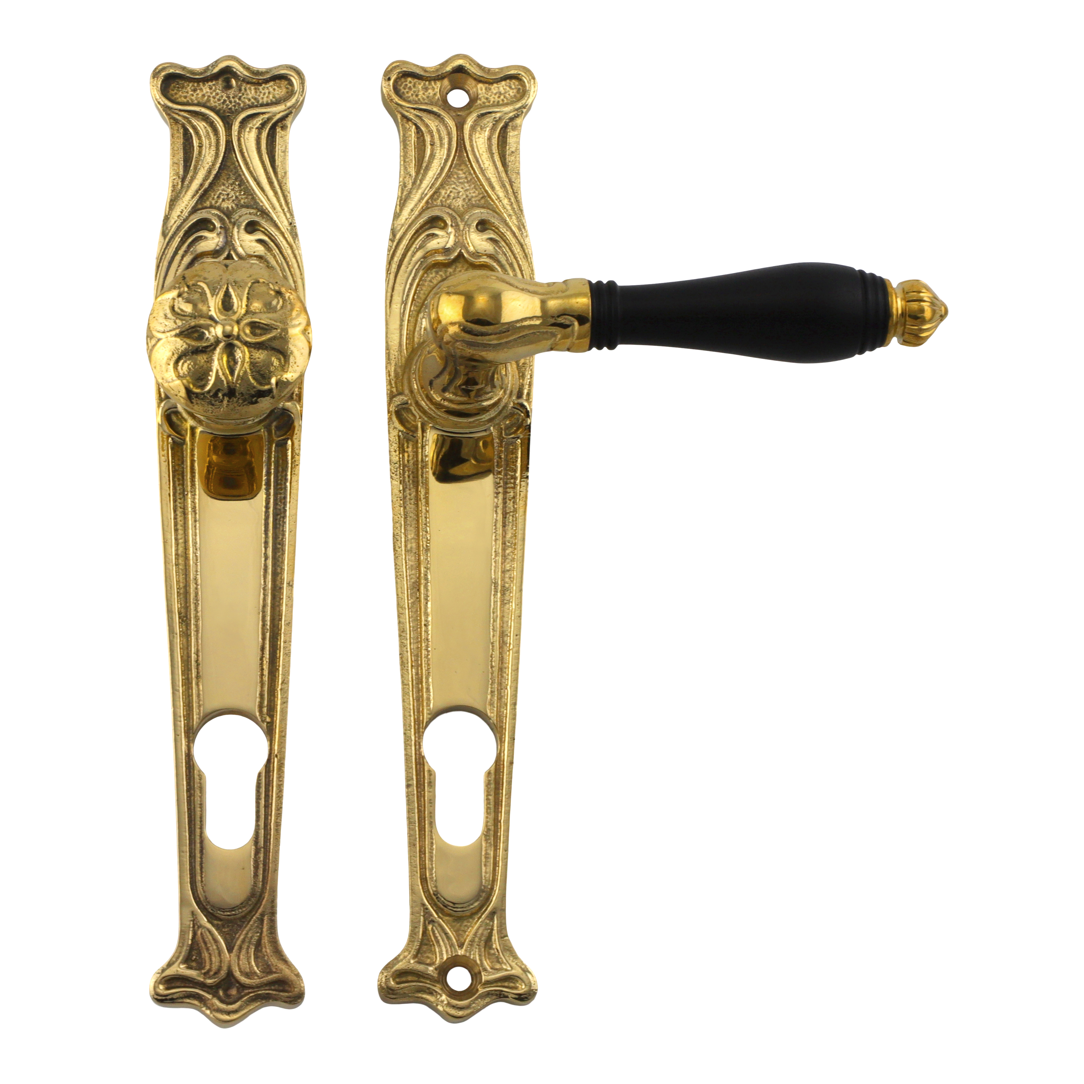 Produktinformationen "312.0046.35 Haustür-Garnitur Türgriffe mit Knauf Messing poliert Jugendstil"