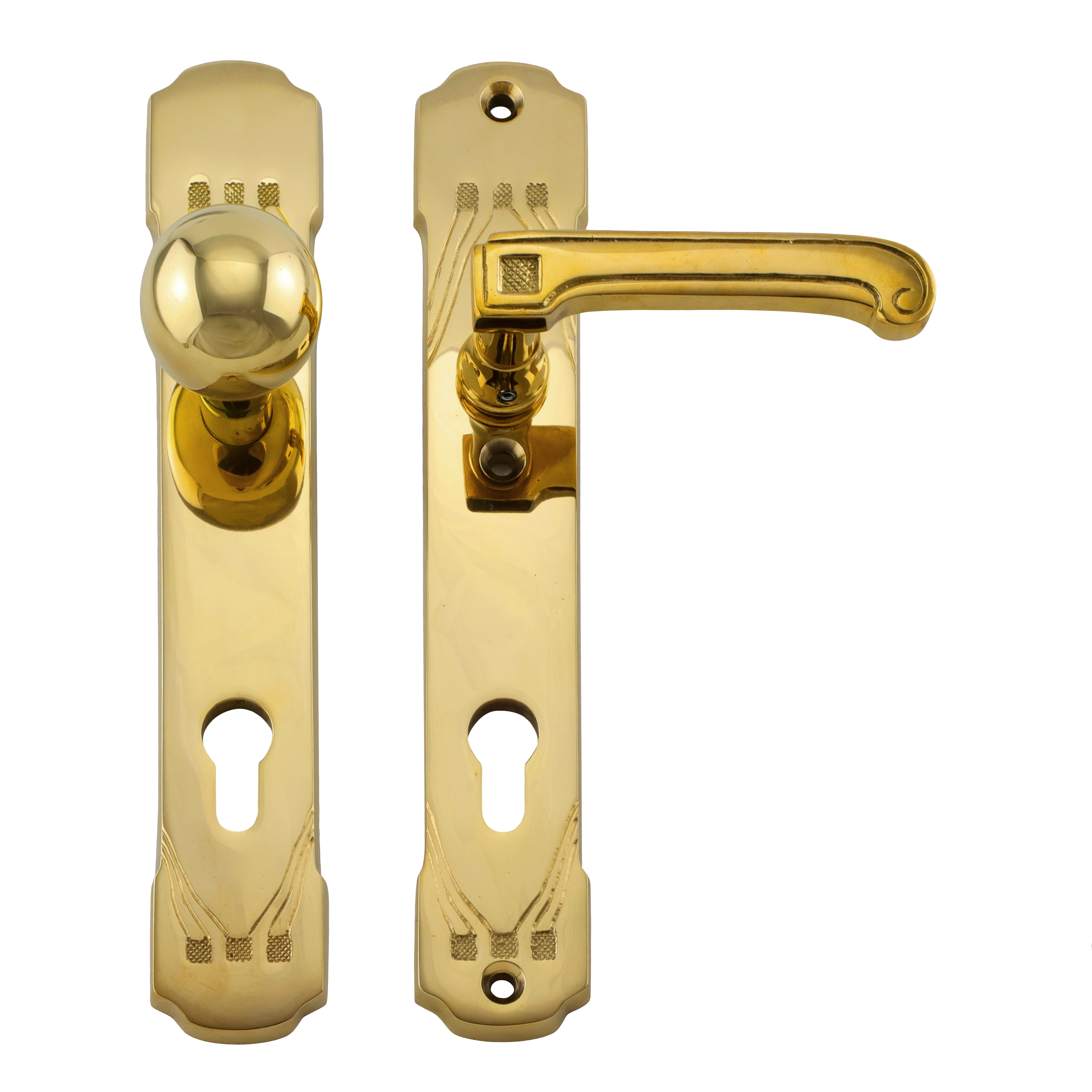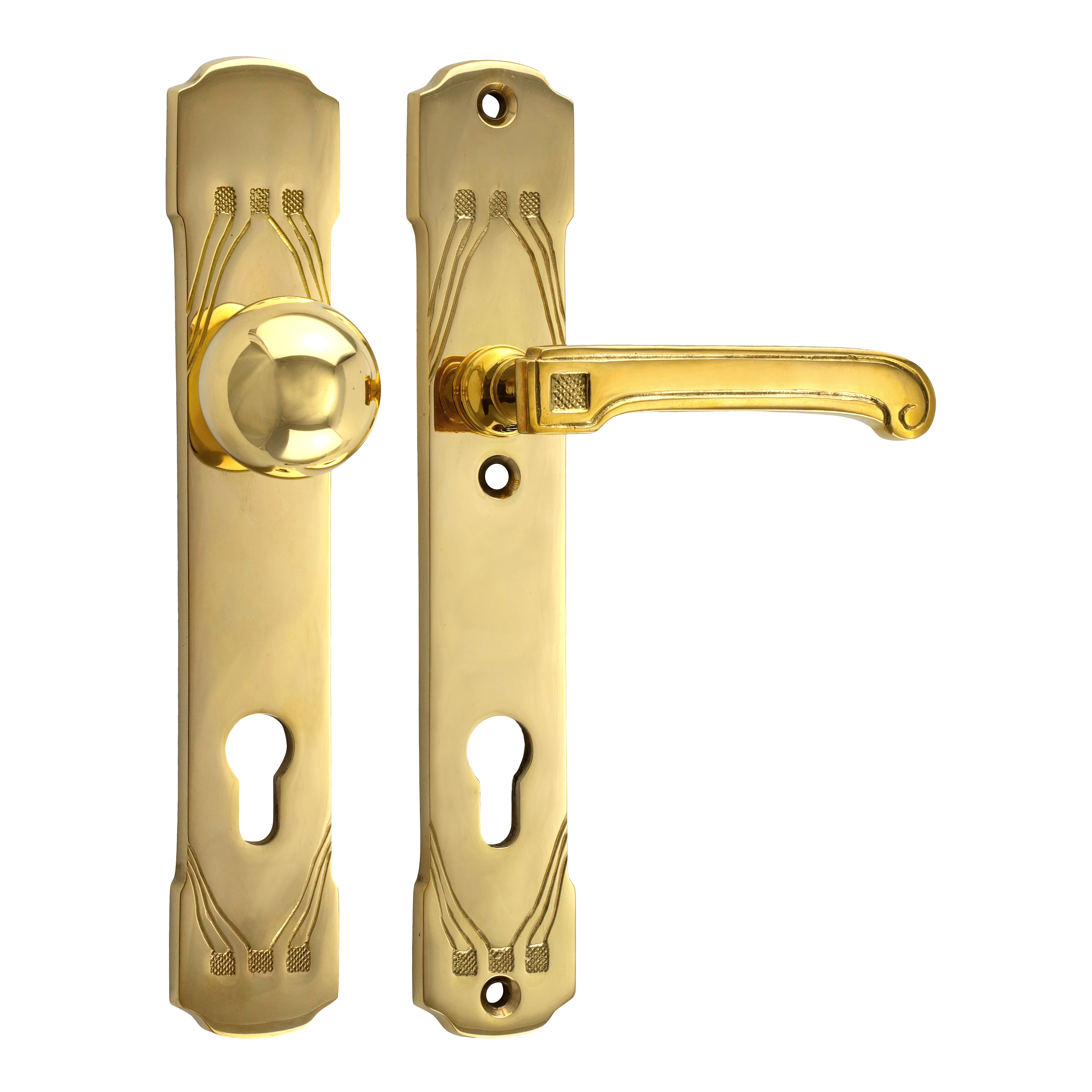 312.0056.35 Haustür-Garnitur Türgriffe mit Knauf Messing poliert Jugendstil DIN links