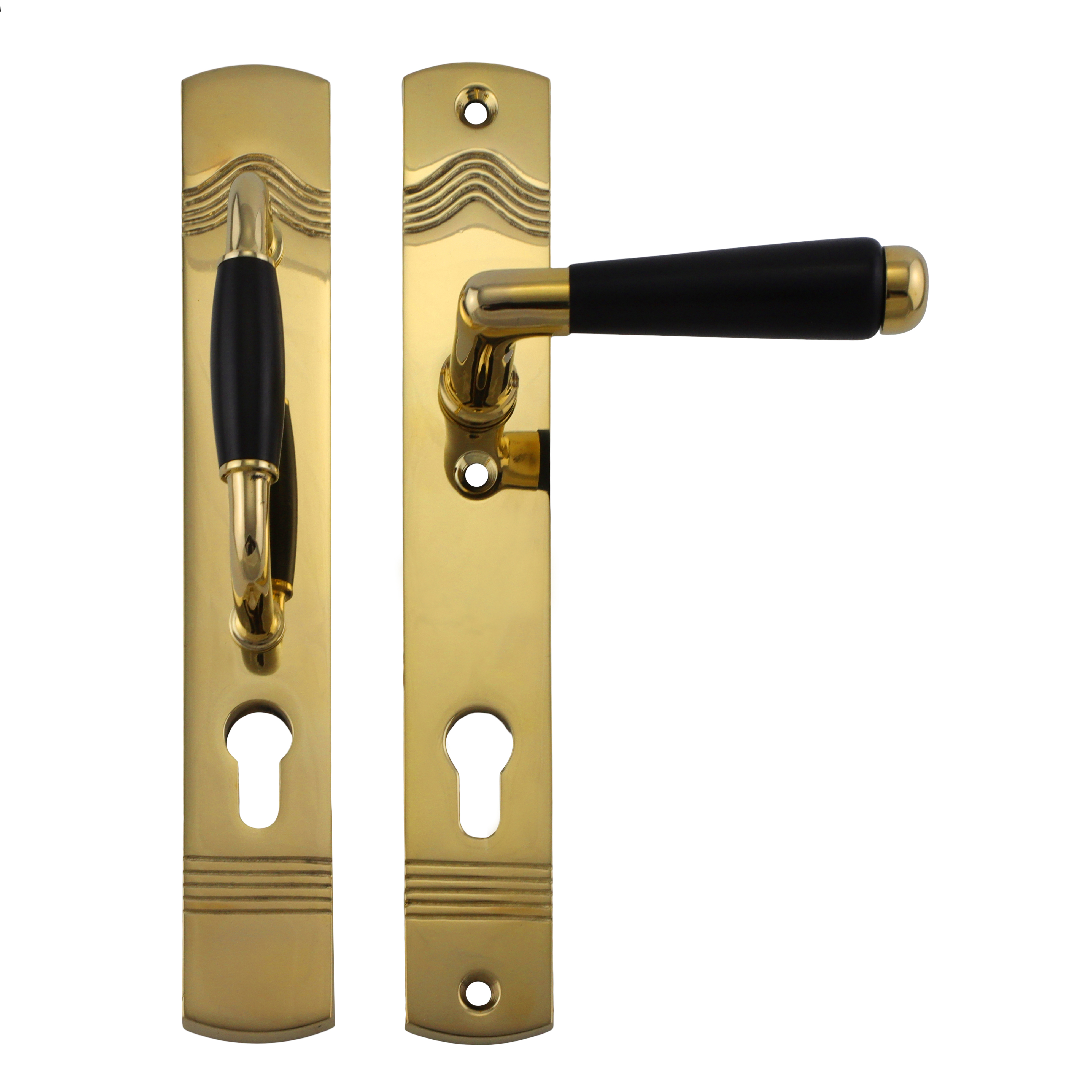 312.0061.35 Haustür-Garnitur Türgriffe mit Ziehgriff Messing poliert Jugendstil
