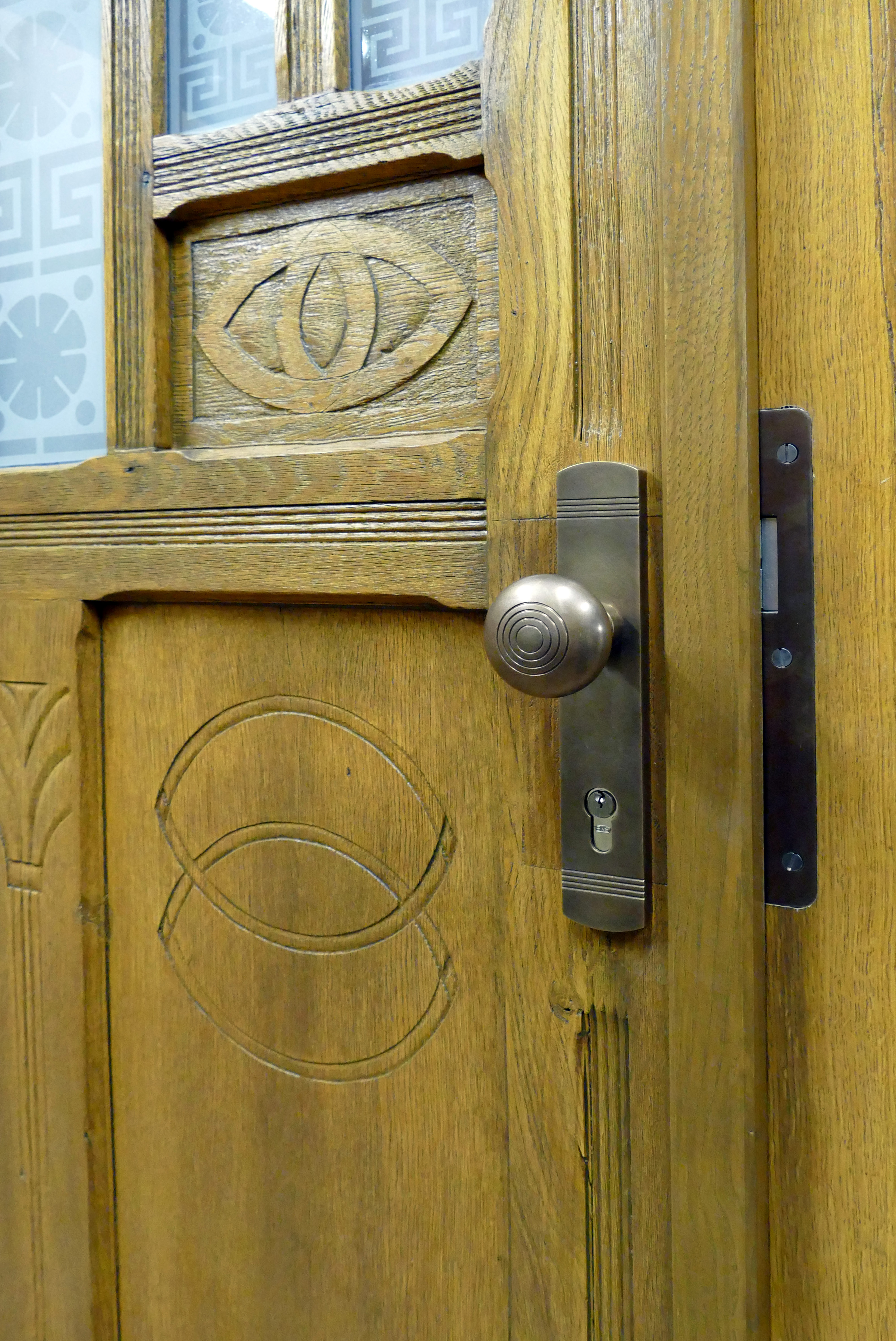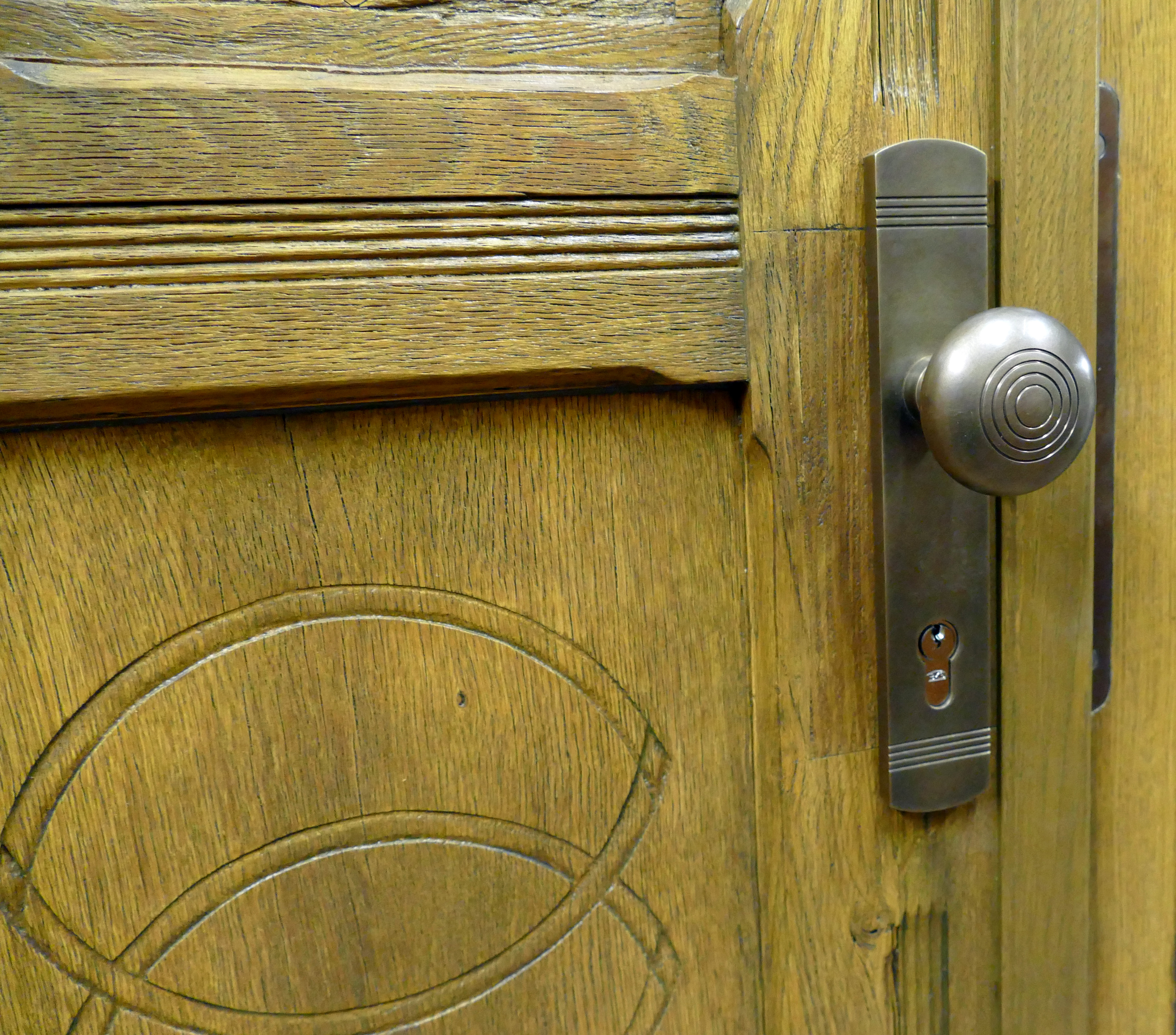 312.0063.45 Haustür-Garnitur Türgriffe mit Knauf Messing patiniert Jugendstil
