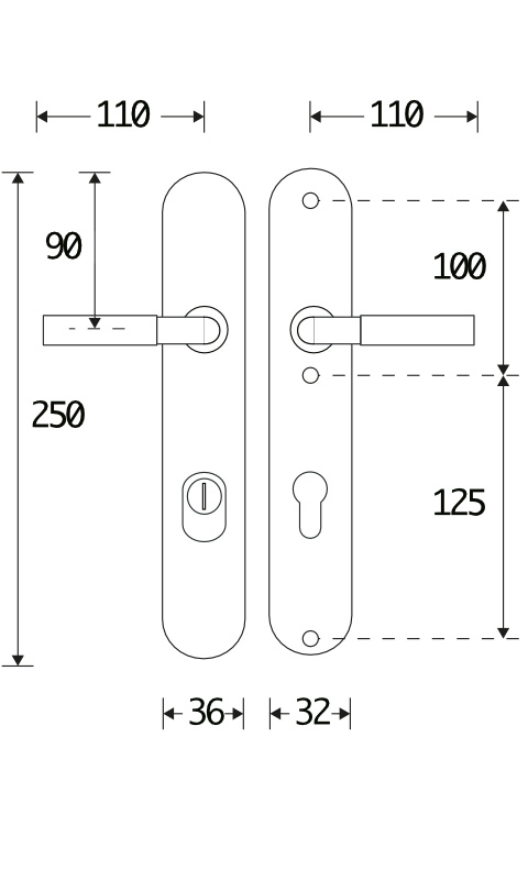 Eigenschaften "312.0089.13 Haustür Langschildgarnitur im Bauhaus-Stil Klinke/Klinke mit Kernziehschutz Messing vernickelt poliert /verchromt poliert 92 PZ DIN rechts"