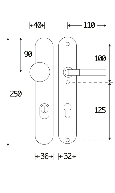 Ausführung Türbeschläge: | Langschilder |