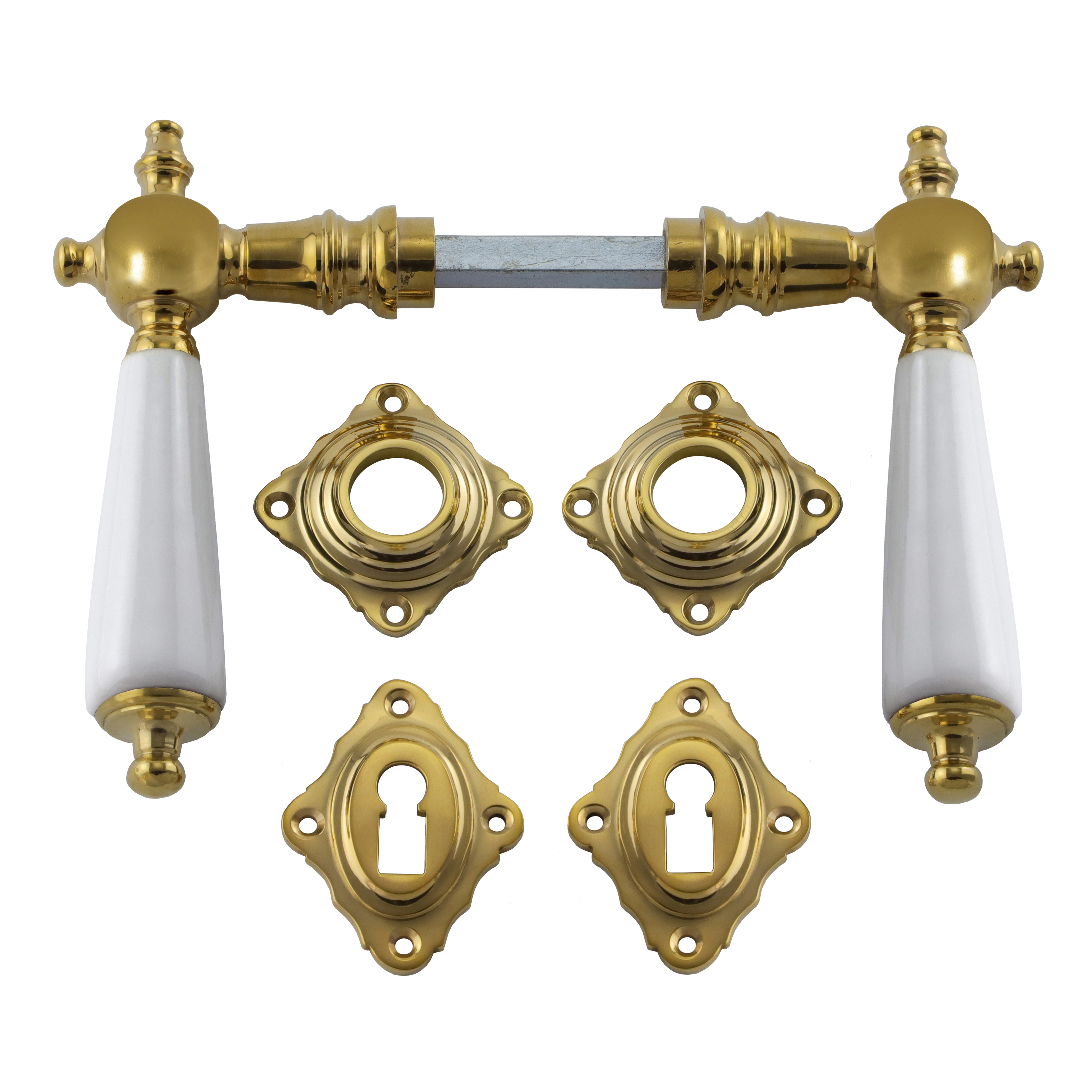 Eigenschaften "321.0005.35 Türgriffe mit Rosetten Messing poliert Porzellan Historismus "