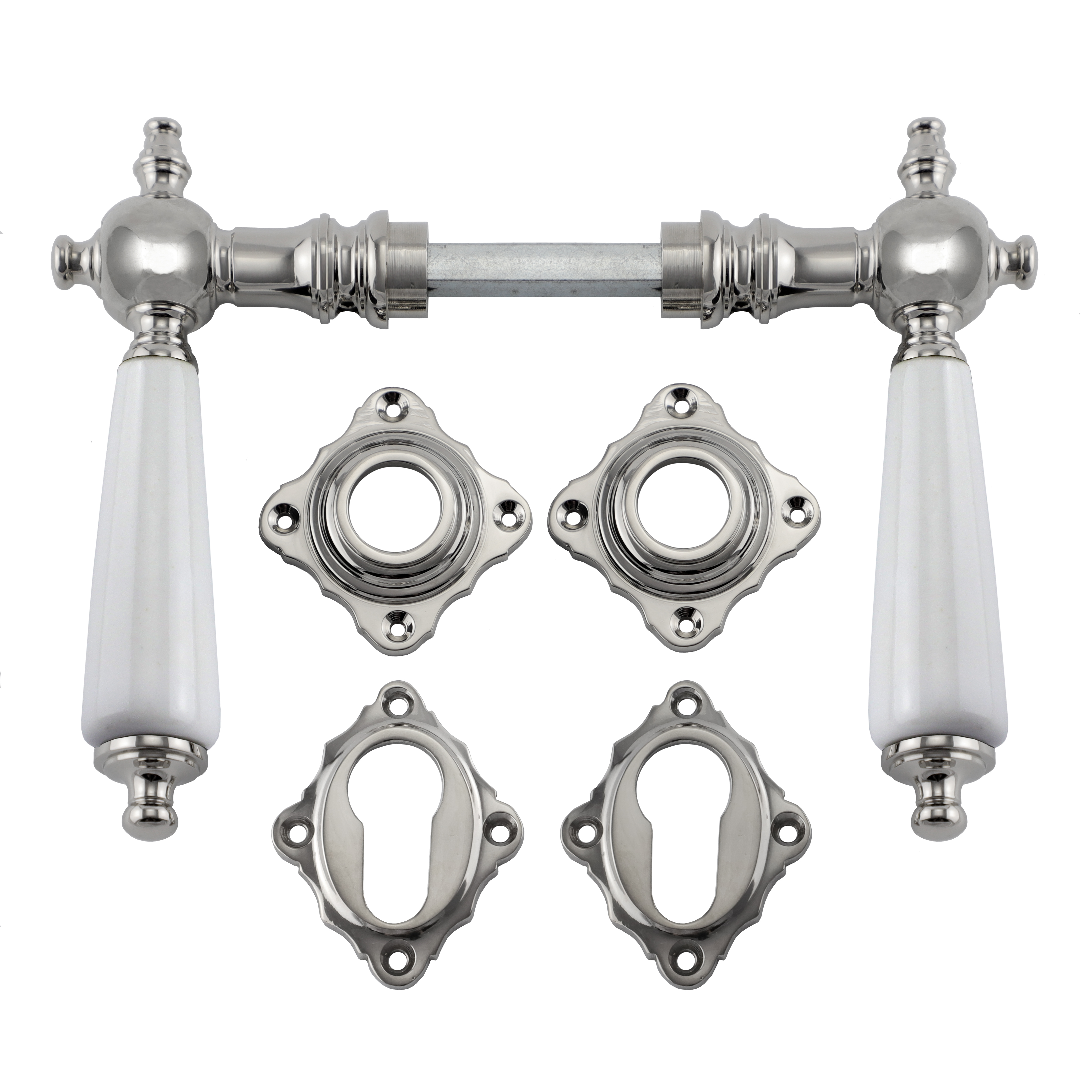 Produktinformationen "321.0026.10 Türgriffe mit PZ-Rosetten Messing vernickelt Porzellan Historismus"