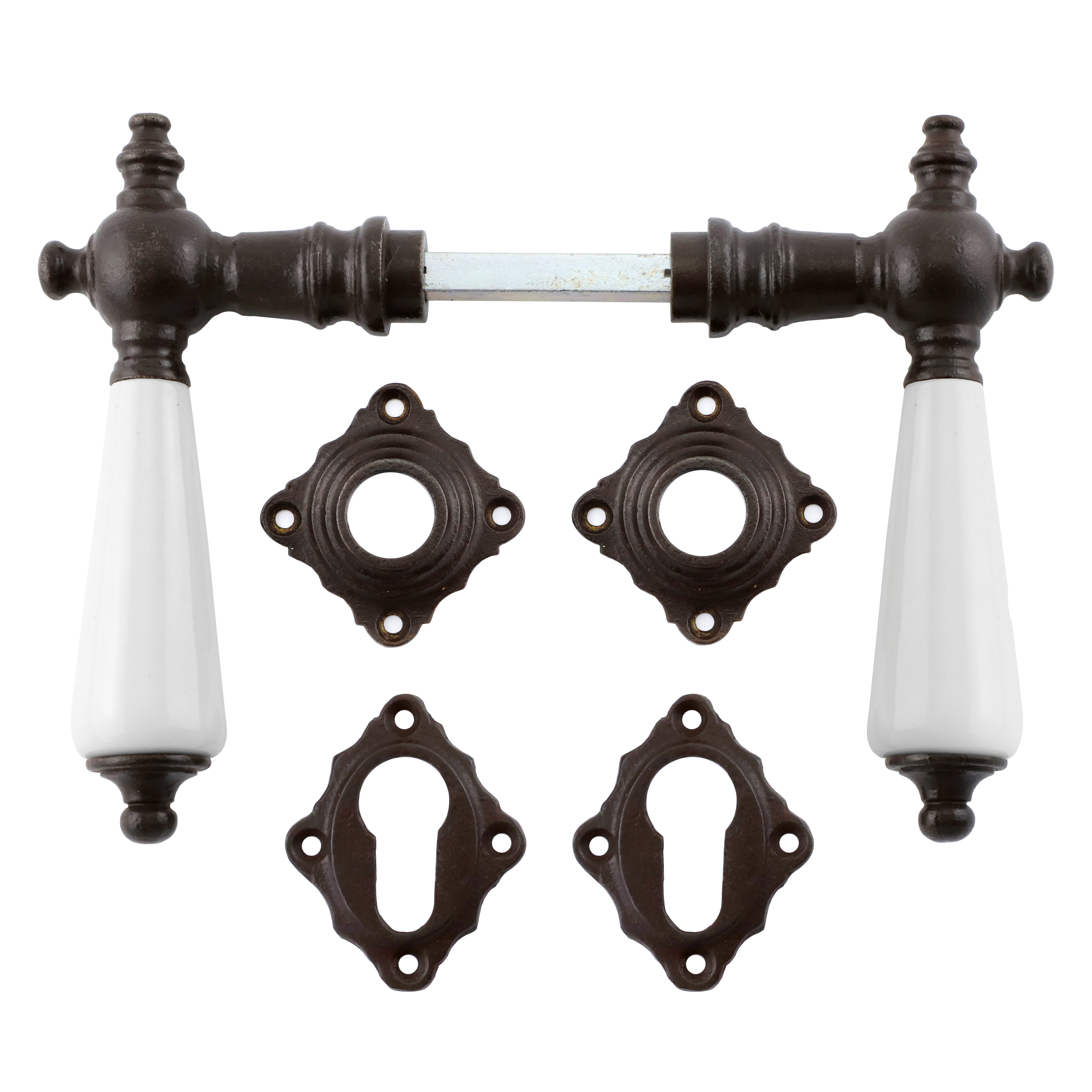 Produktinformationen "321.0034.60 Türgriffe mit PZ-Rosetten Eisen antik Porzellan Historismus"