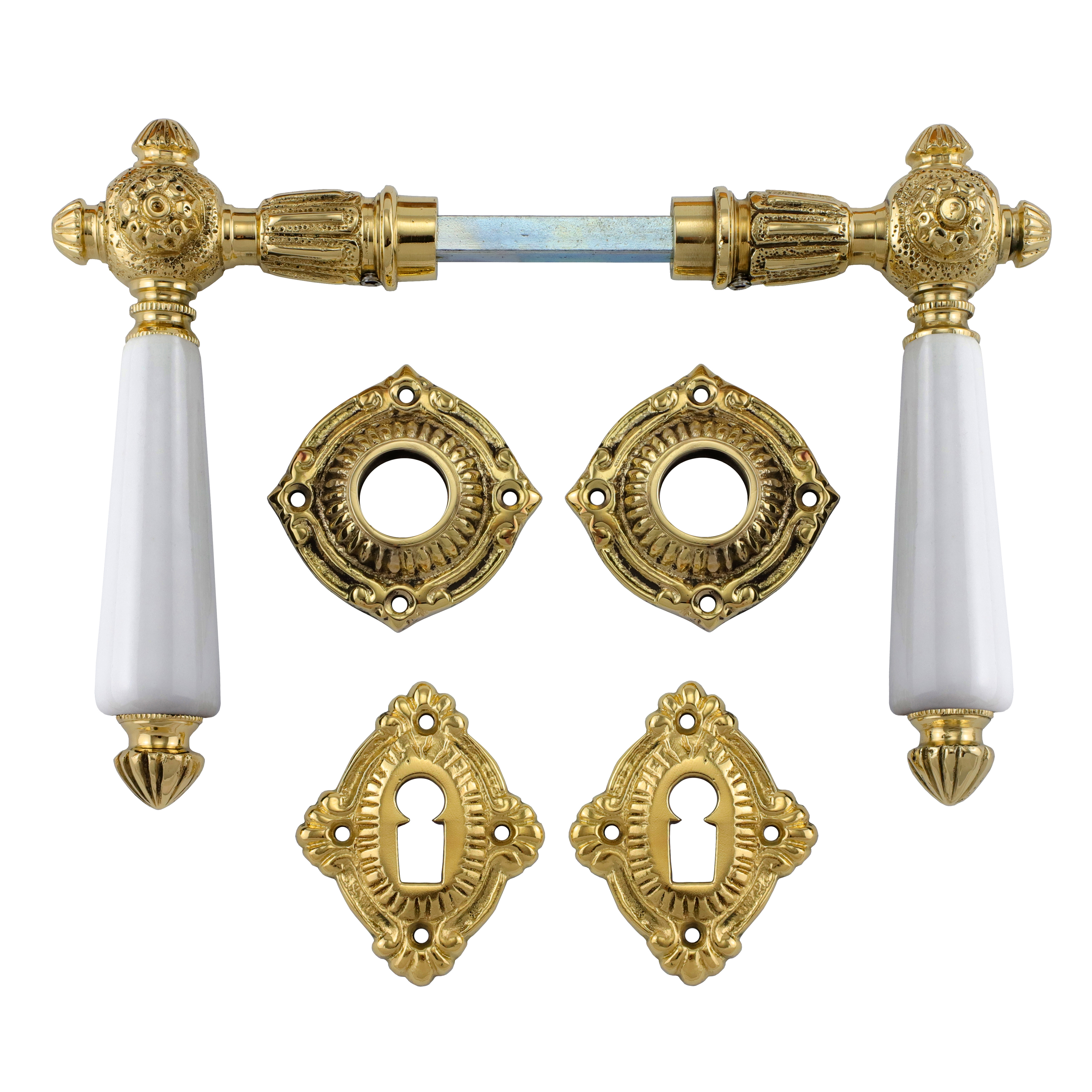 Eigenschaften "321.0135.35 Türgriffe mit Rosetten Messing poliert Porzellan Gründerzeit "