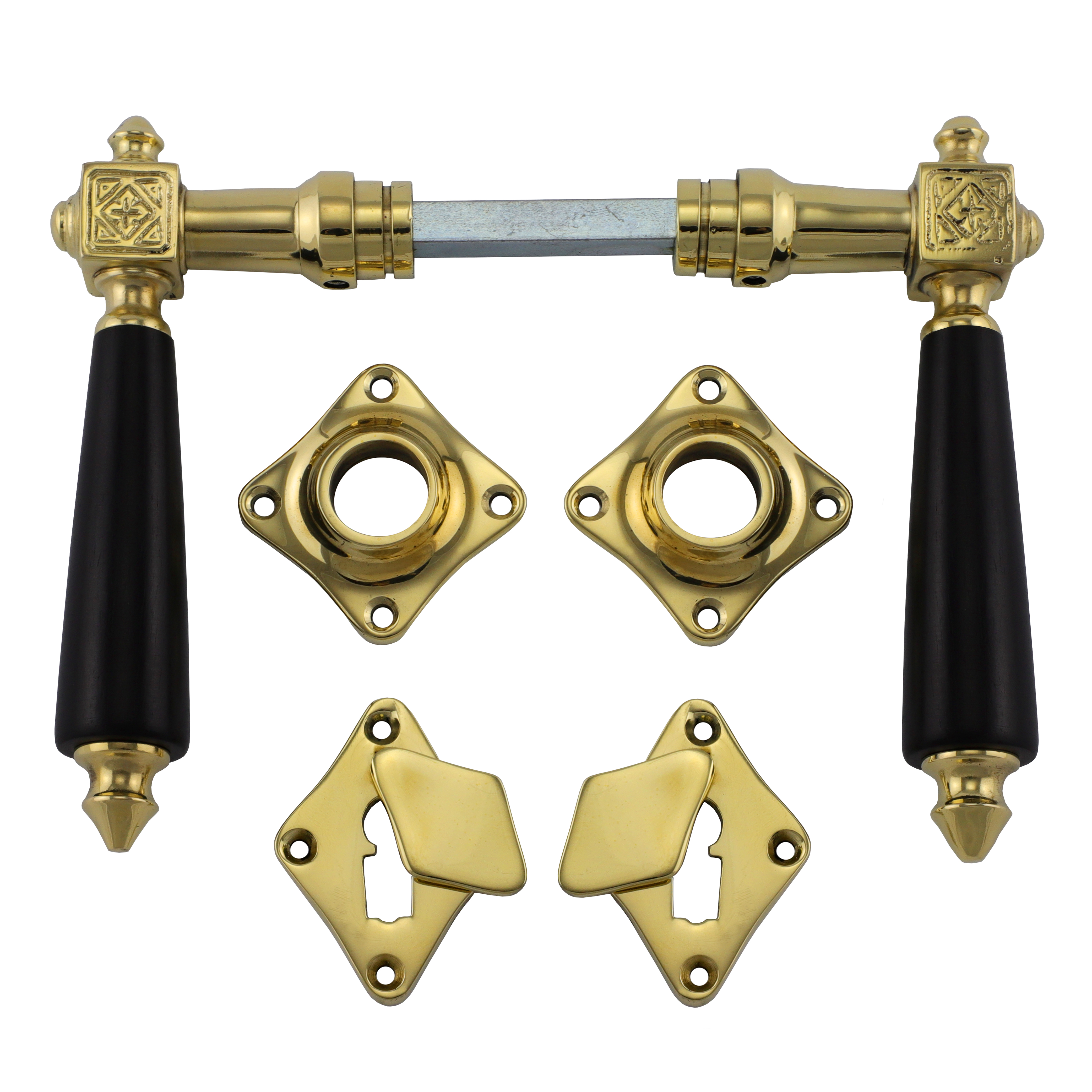 Eigenschaften "321.0137.35 Türgriffe mit Rosetten Messing poliert Ebenholz Gründerzeit"