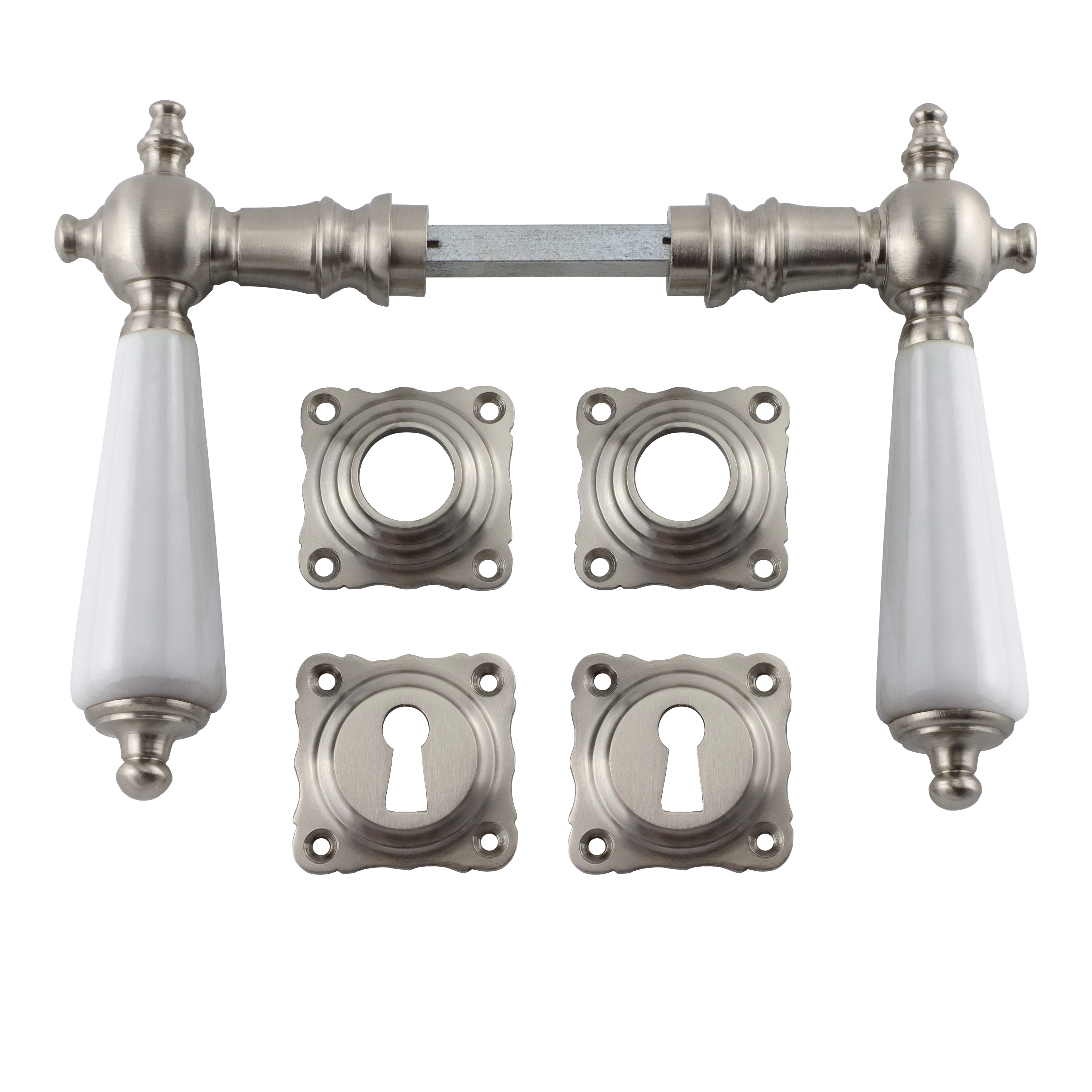 Eigenschaften "321.0243.15 Türgriffe mit Rosetten Messing vernickelt Porzellan Historismus"