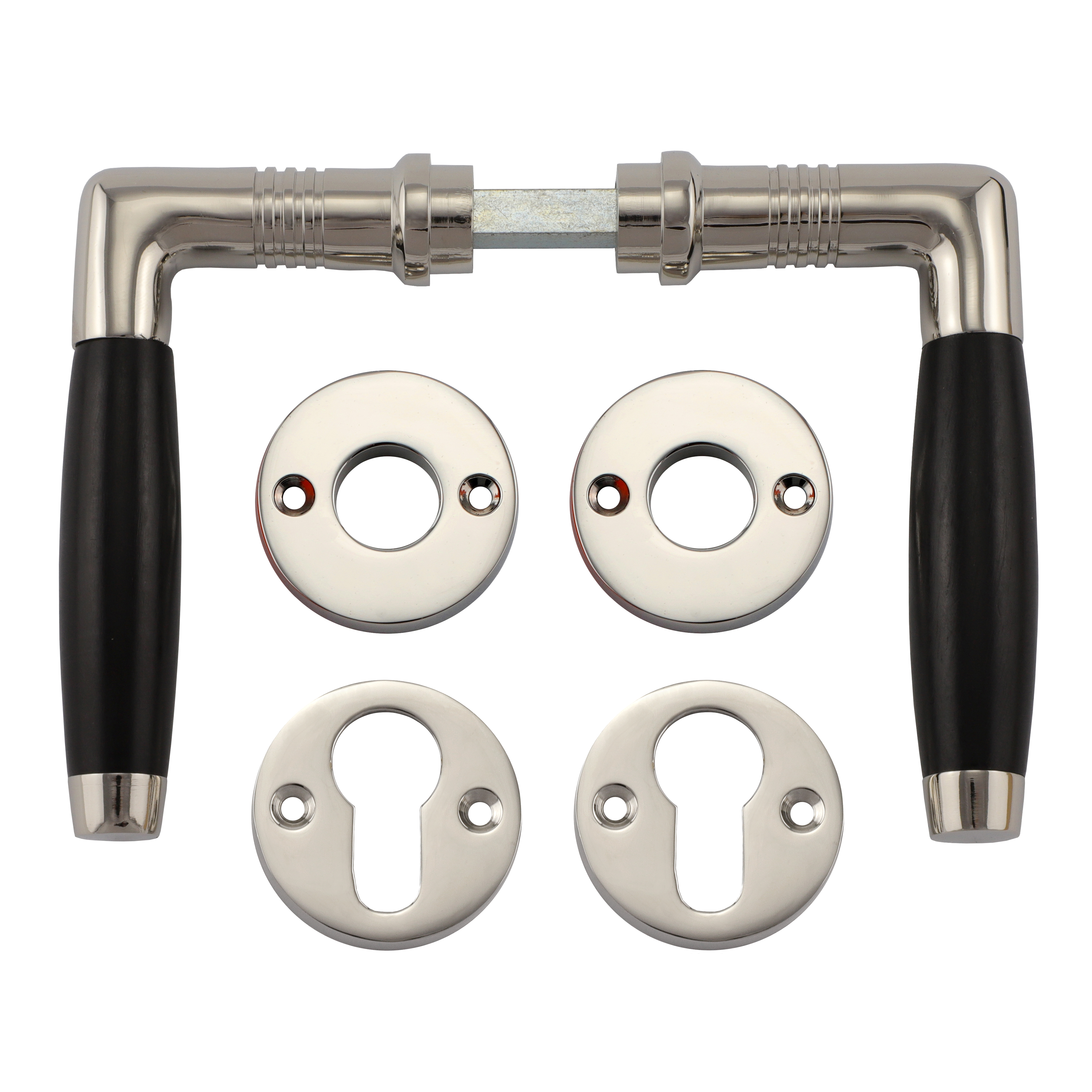Produktinformationen "321.0245.10 Türgriffe mit PZ-Rosetten Jugendstil Messing vernickelt Ebenholz für Zimmertüren"