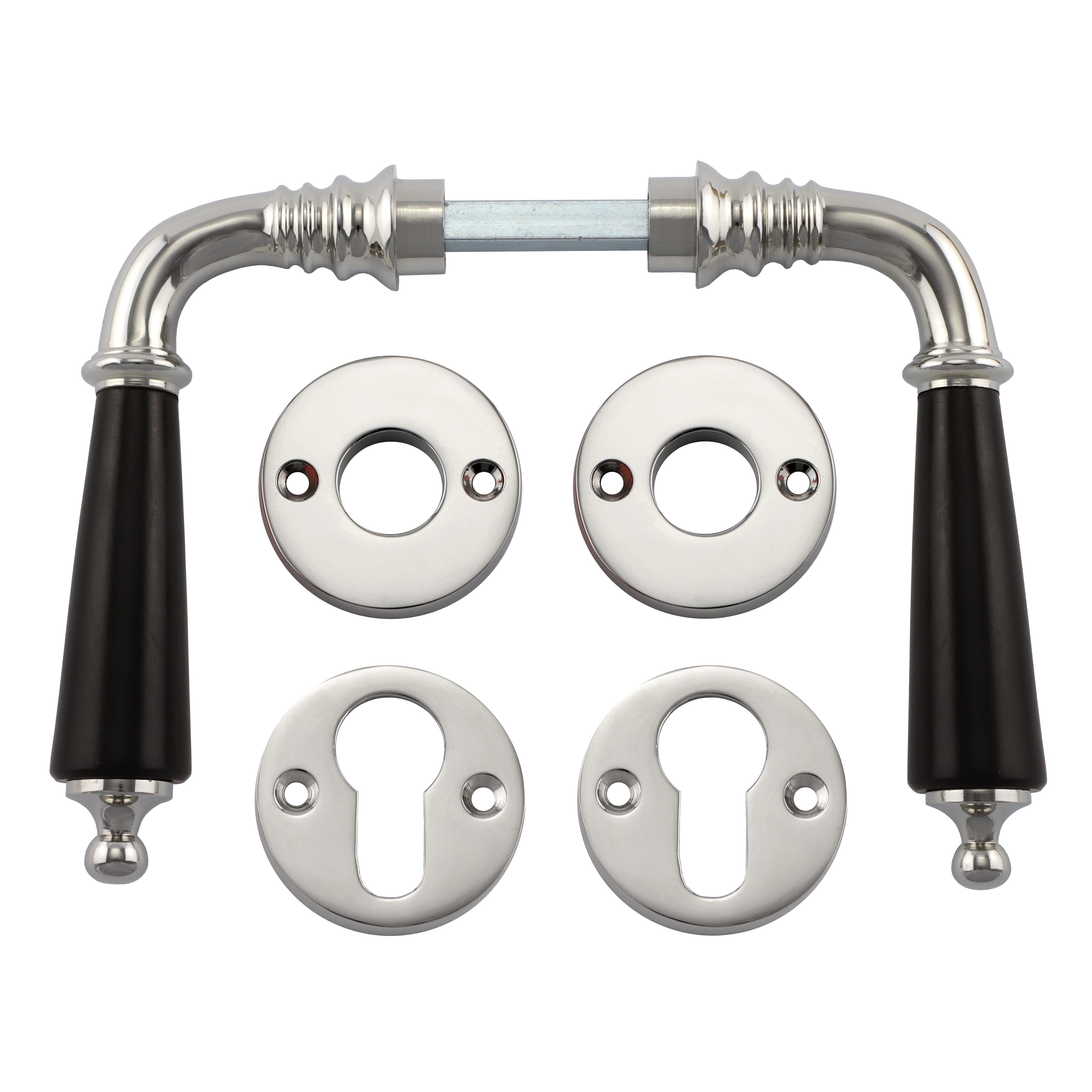 Produktinformationen "321.0251.10 Türgriffe mit PZ-Rosetten Jugendstil Messing vernickelt Ebenholz"