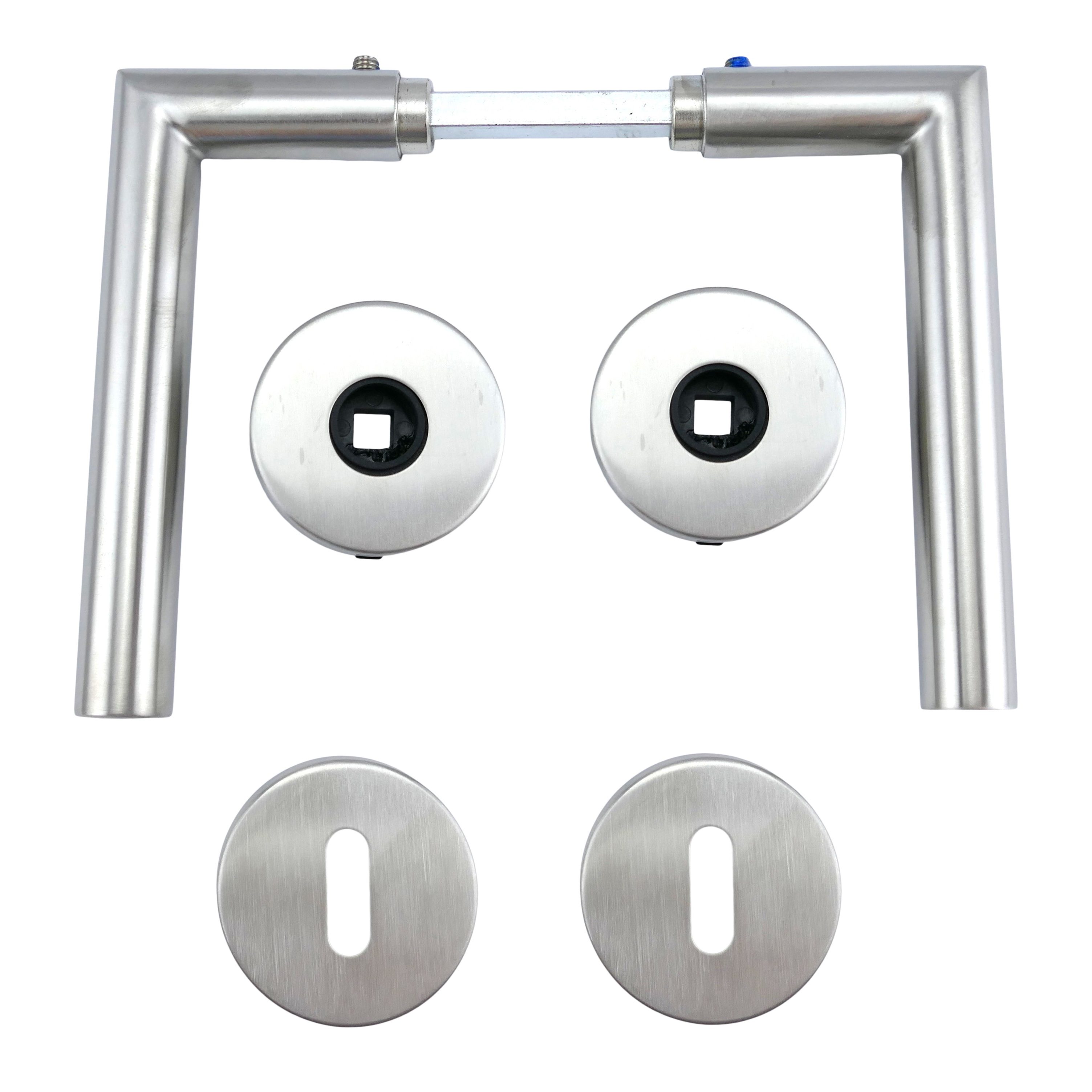 Eigenschaften "321.0266.96 Thea ATP ProGriff Türgriffe mit Rosetten Edelstahl gebürstet für Bunt Bart Schlüssel"