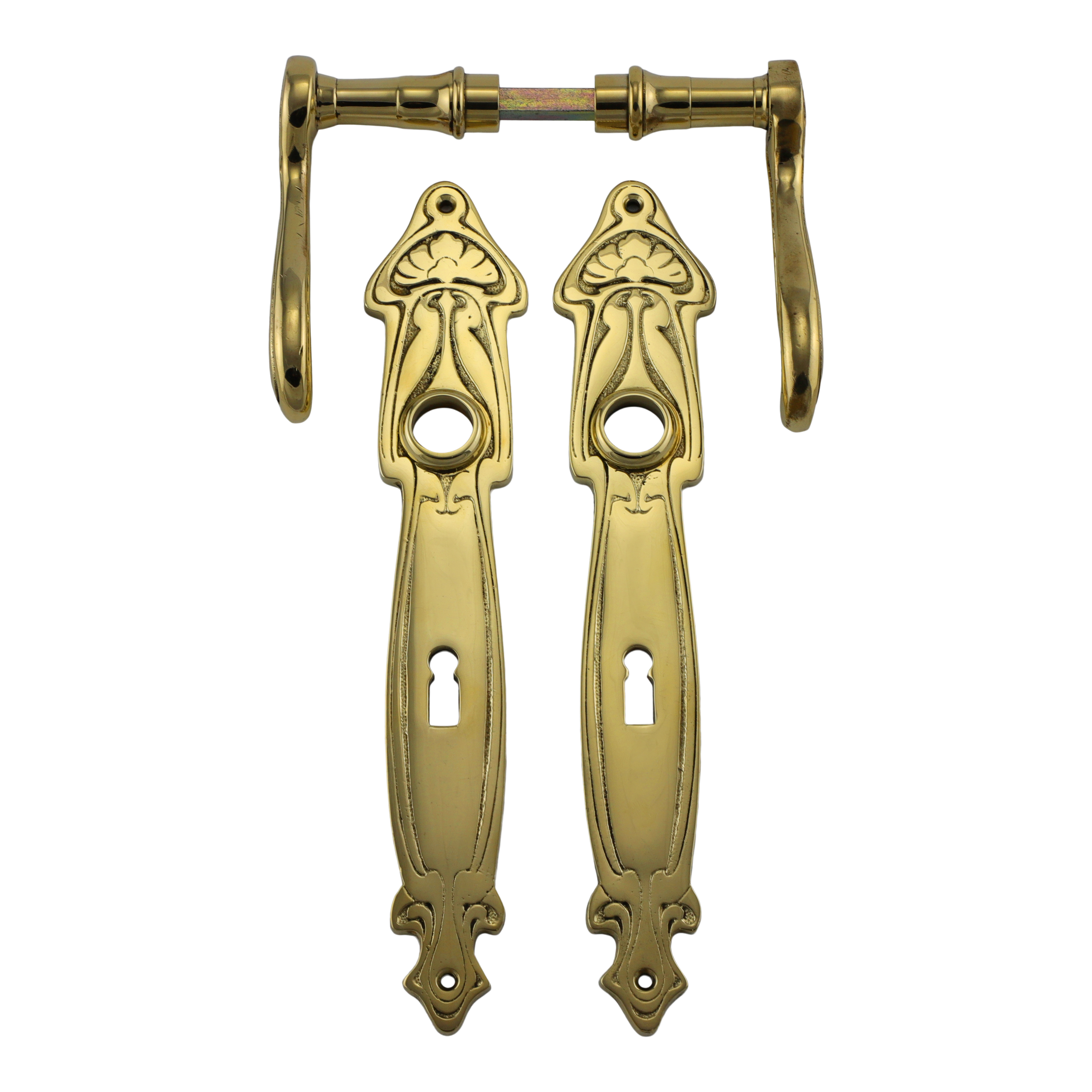 Produktinformationen "322.0034.35 Türgriffe mit Langschild Jugendstil Messing poliert"