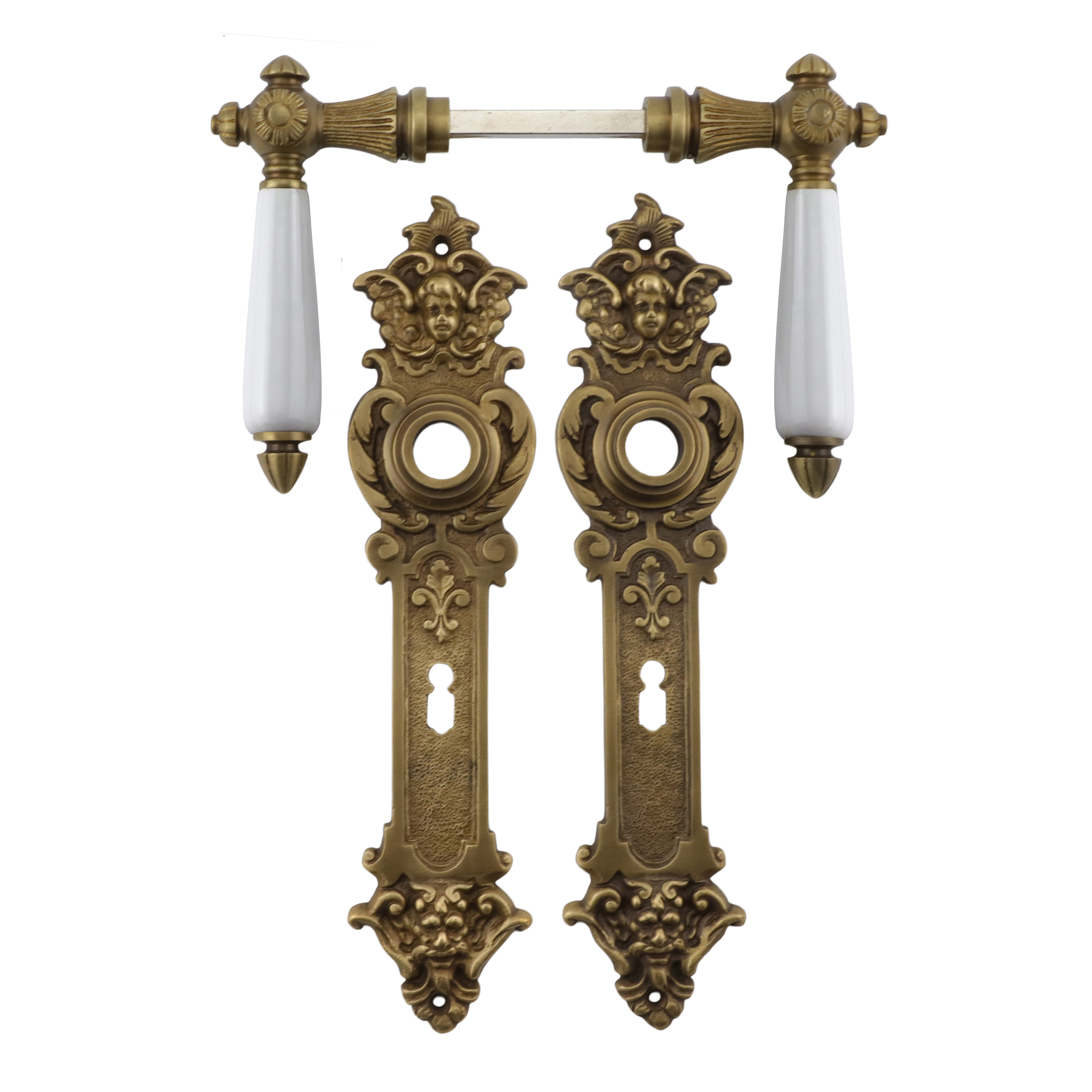 Produktinformationen "322.0062.45 Türgriffe mit Langschild Gründerzeit Messing patiniert Porzellan"