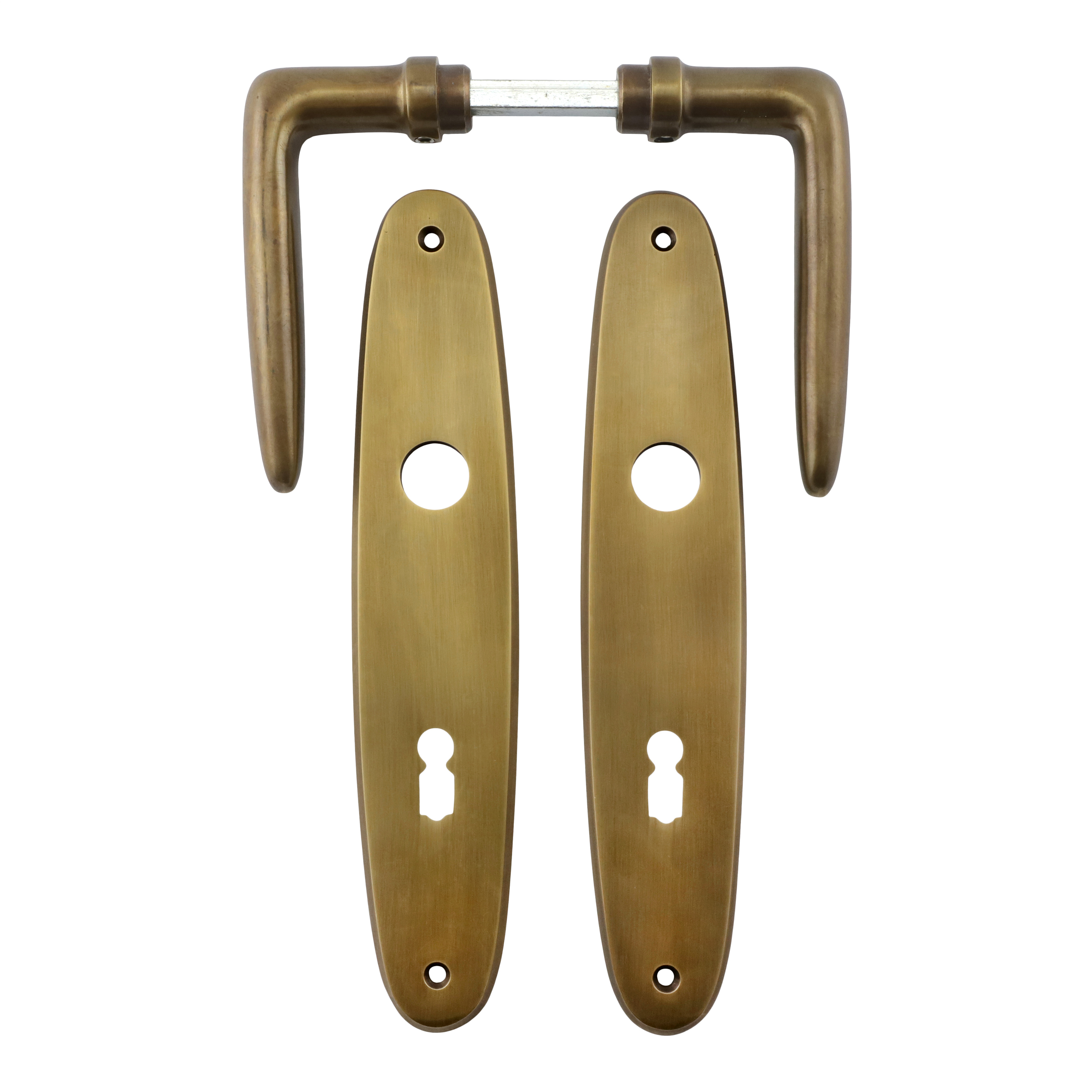 322.0098.45 Türgriffe mit Langschild 20er Jahre Messing patiniert