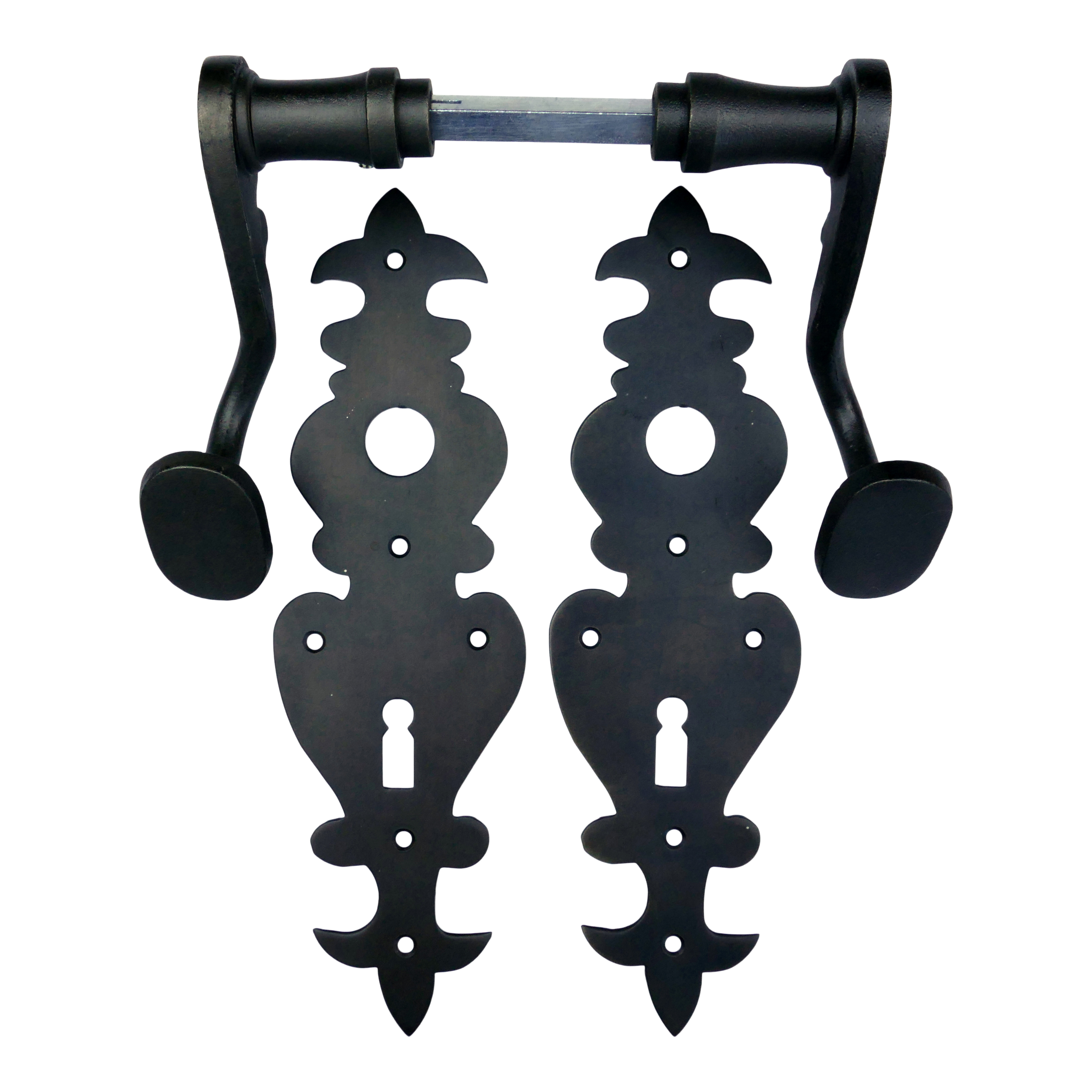 Geschwärzter Türbeschlag aus Eisen für Zimmertüren. Es handelt sich bei diesem außergewöhnlichen Türgriff um eine authentische Reproduktion nach historischem Vorbild.