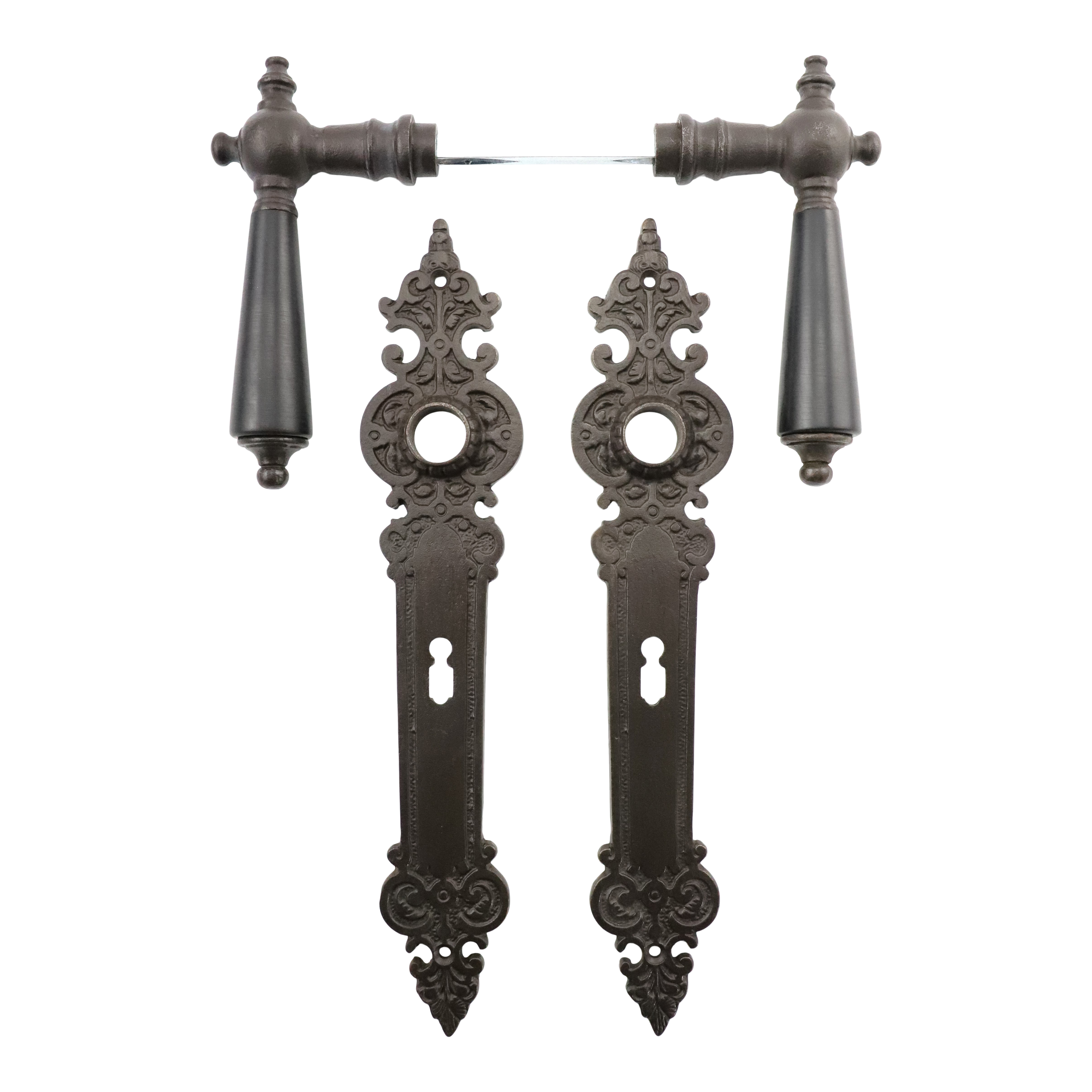 322.0131.60 Türgriffe mit Langschild Gründerzeit Eisen antik Ebenholz