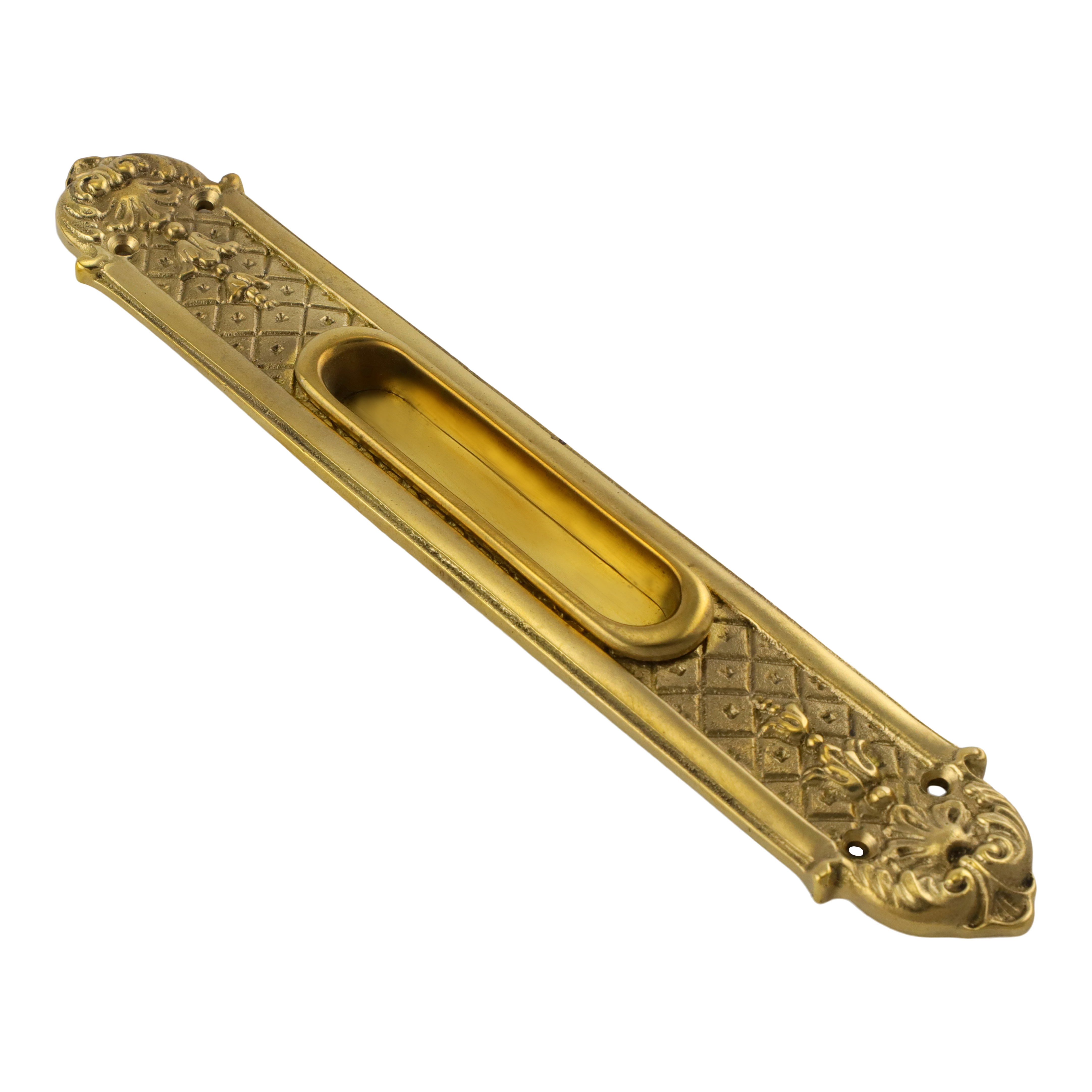 325.0001.35 Schiebetürgriff Griffmuschel Muschelgriff Einlassgriff Gründerzeit-Stil Messing poliert