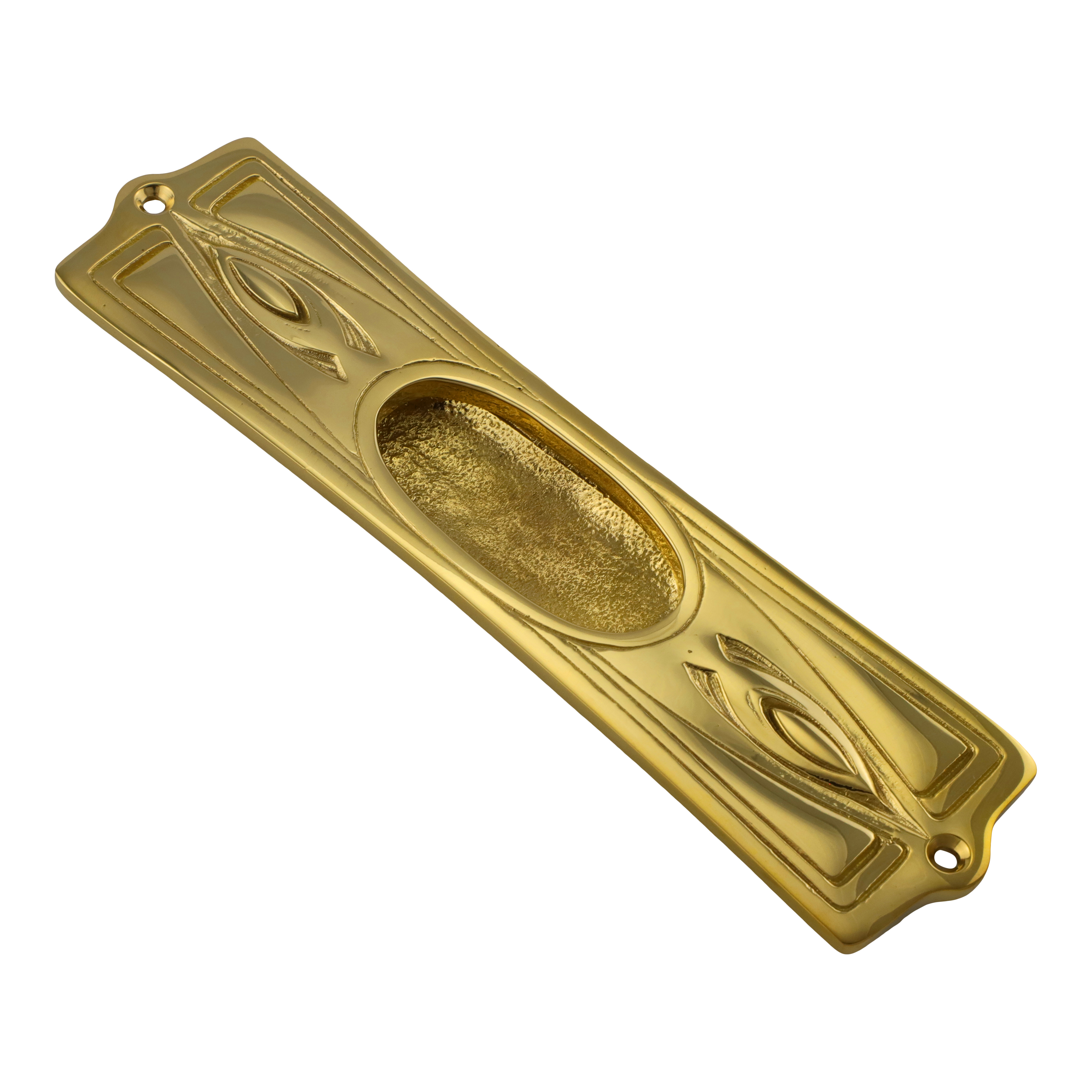 325.0002.35 Schiebetürgriff Griffmuschel Muschelgriff Einlassgriff Jugendstil Messing poliert