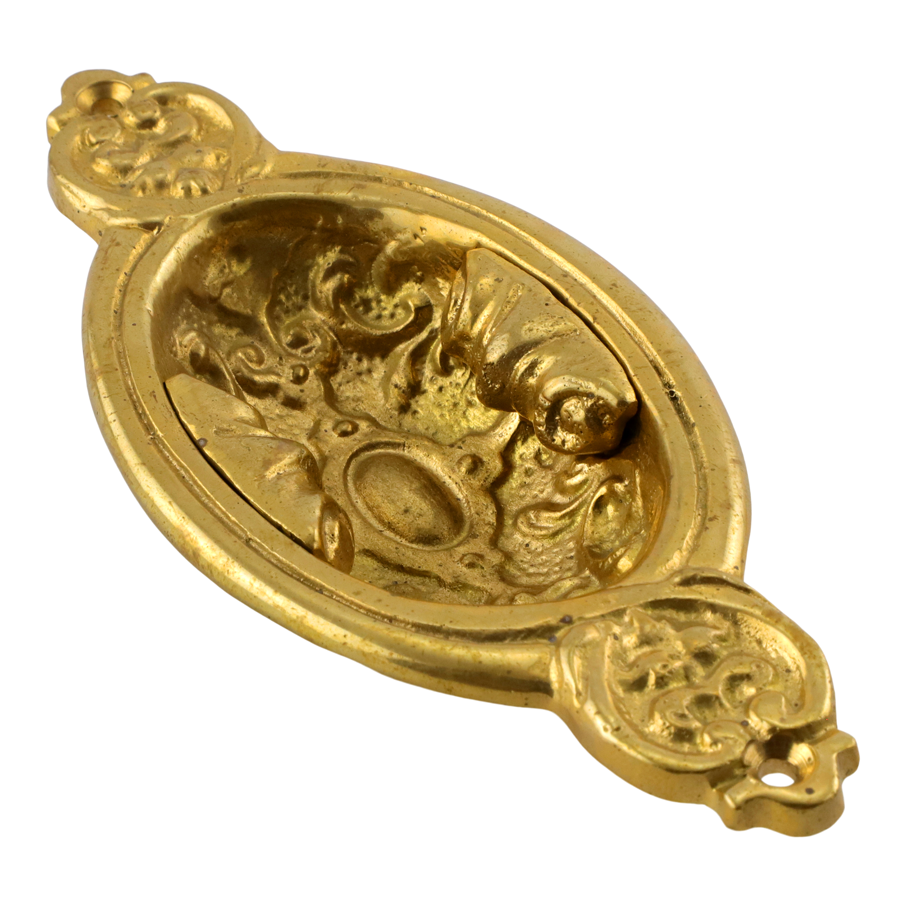 325.0006.35 Schiebetürgriff Griffmuschel Muschelgriff Einlassgriff Gründerzeit Messing poliert