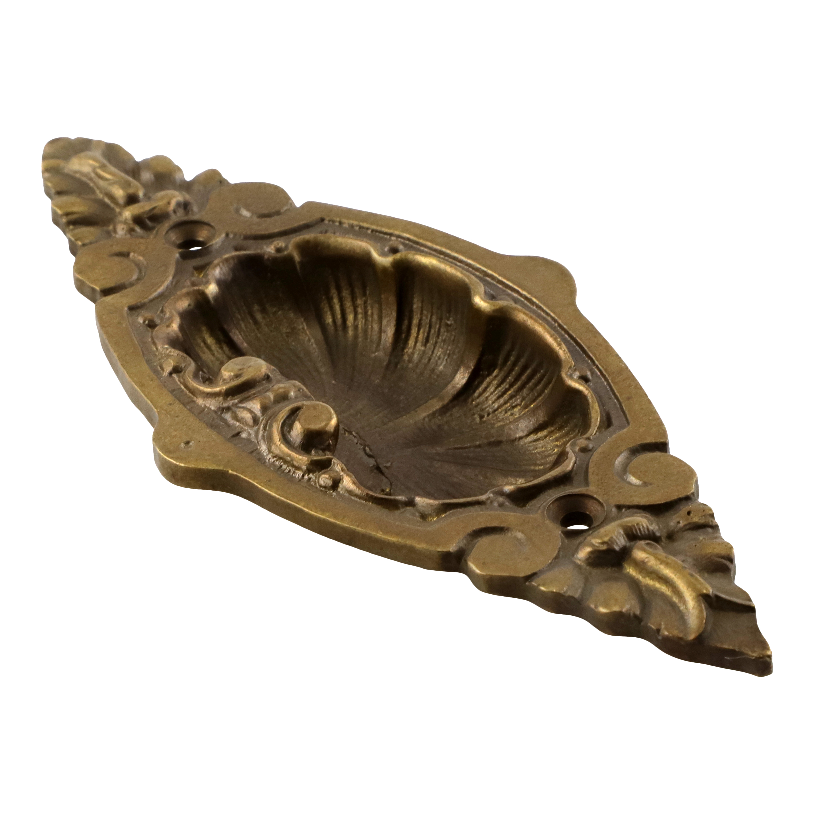 Produktinformationen "325.0012.45 Schiebetürgriff Griffmuschel Muschelgriff Einlassgriff Gründerzeit Messing patiniert"