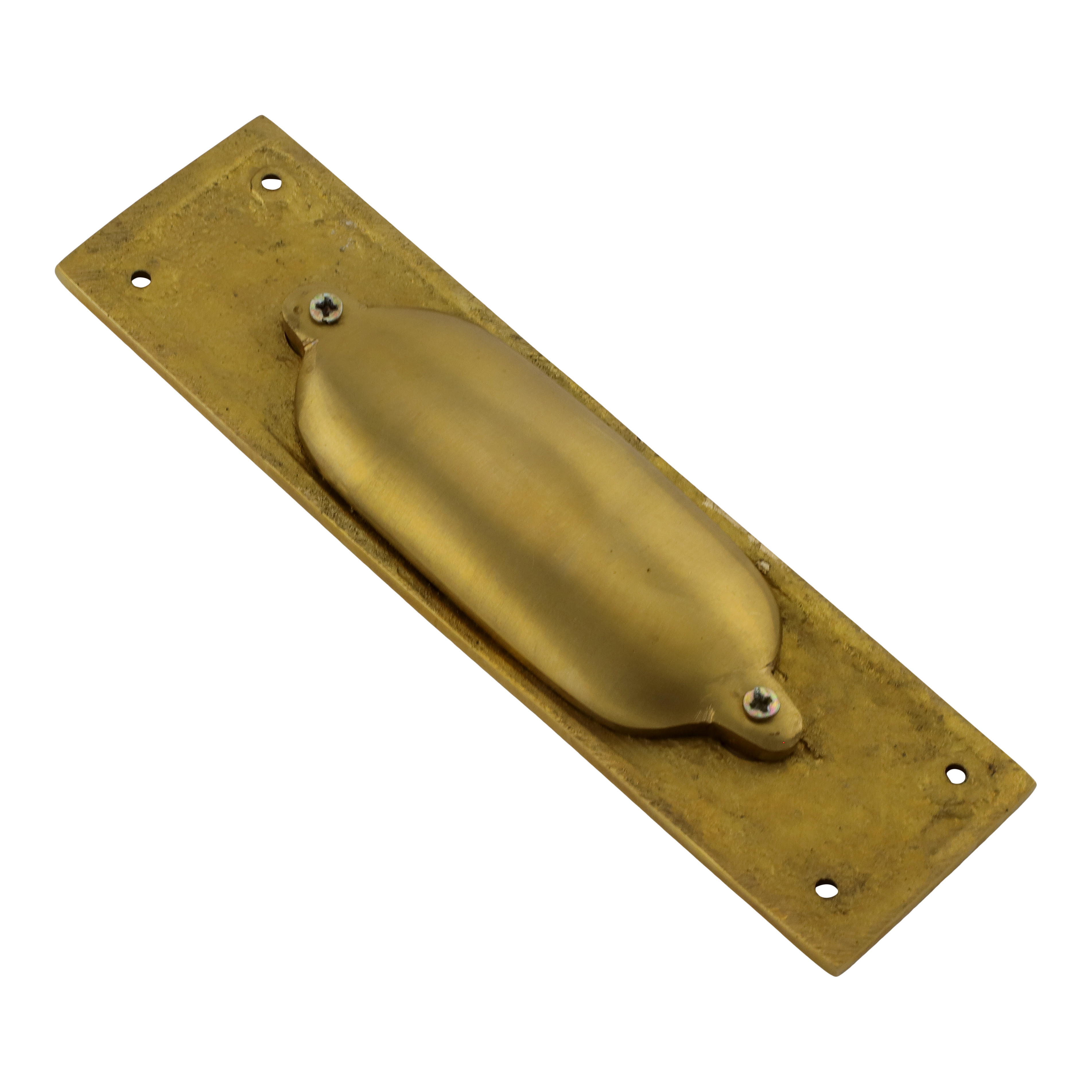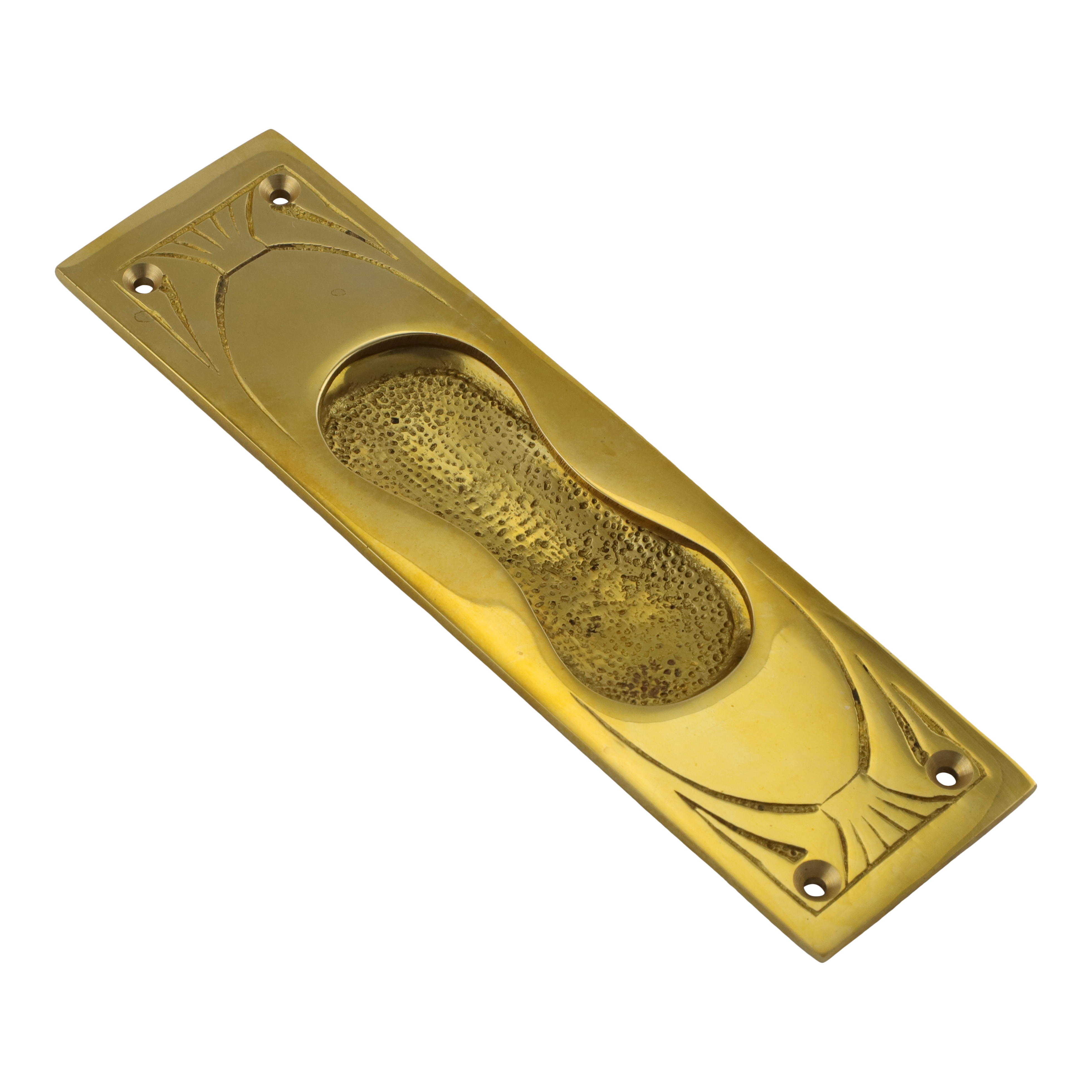 325.0016.35 Schiebetürgriff Griffmuschel Muschelgriff Einlassgriff Jugendstil Messing poliert