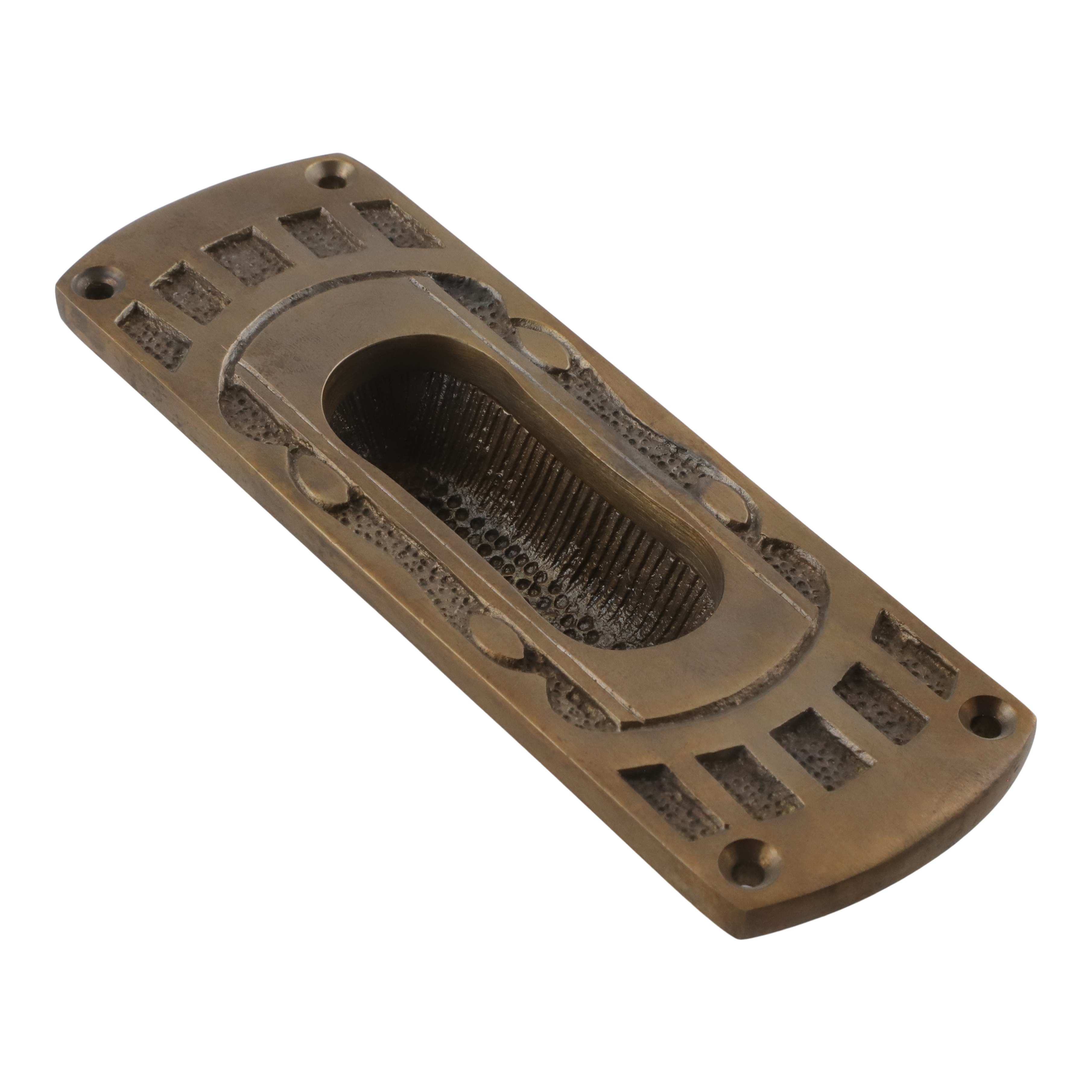 325.0033.45 Schiebetürgriff Griffmuschel Muschelgriff Einlassgriff Jugendstil Messing patiniert