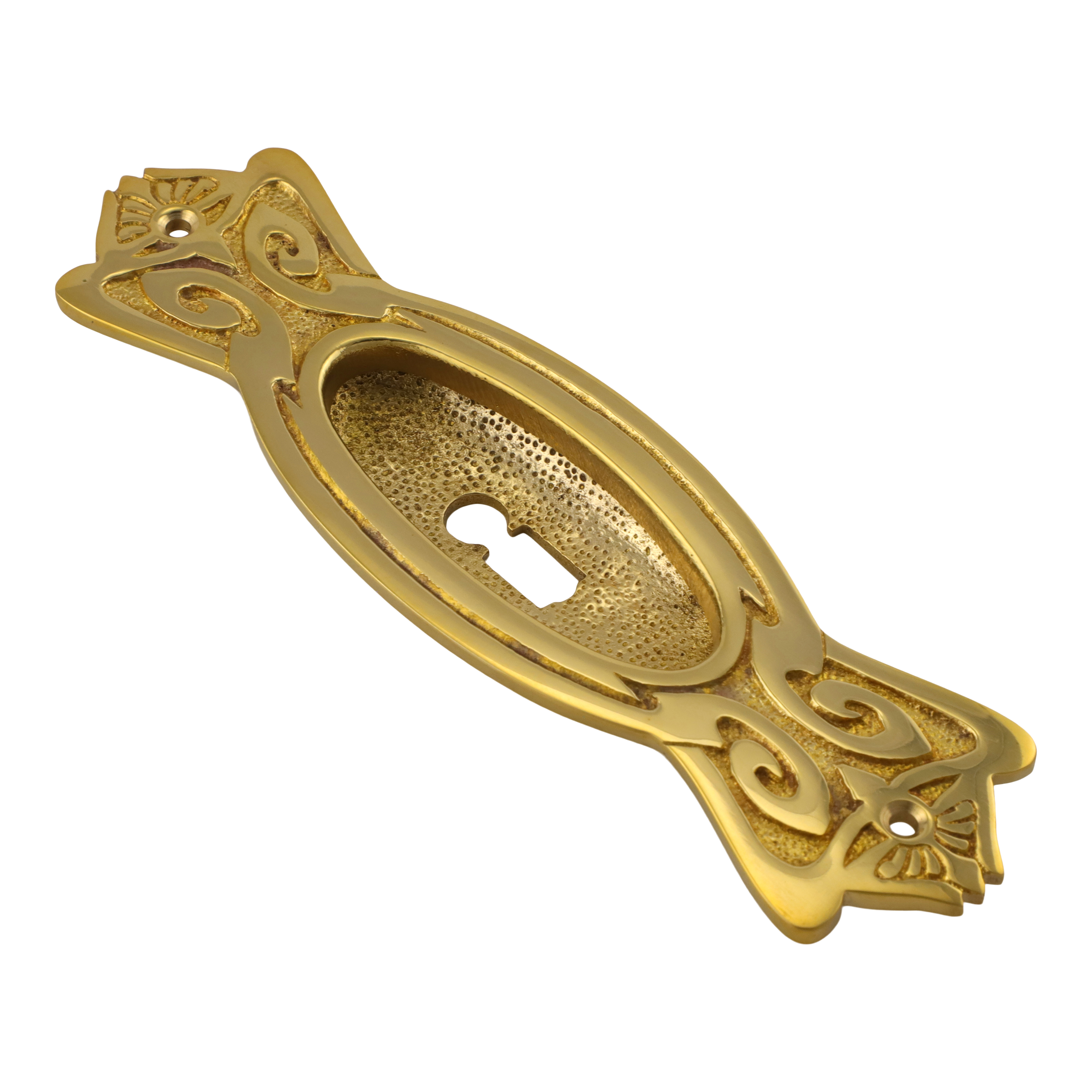 325.0038.35 Schiebetürgriff Griffmuschel Muschelgriff Einlassgriff Jugendstil Messing poliert
