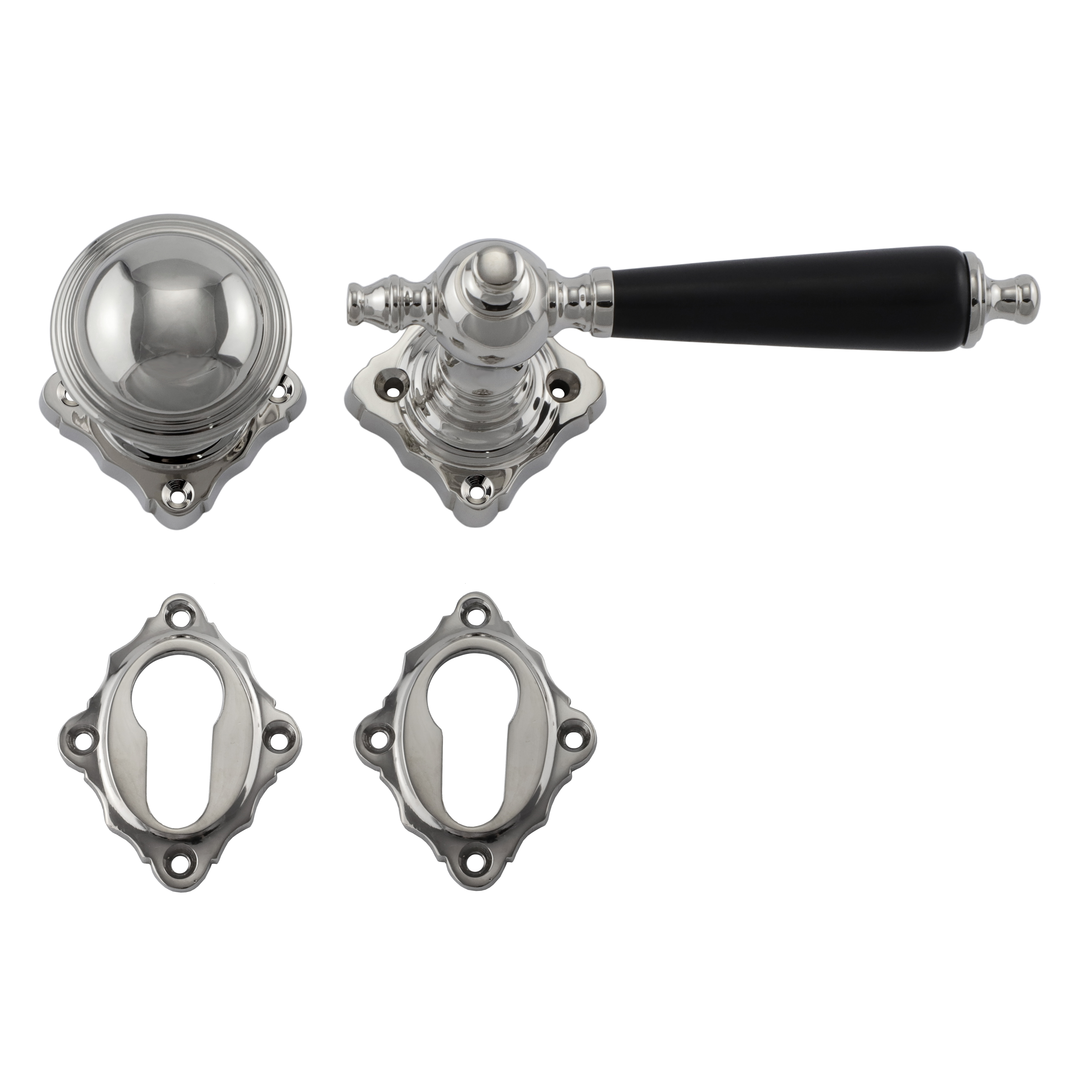 331.0001.10 Eingangstür-Garnitur Türgriffe mit Knauf Historismus Nickel poliert