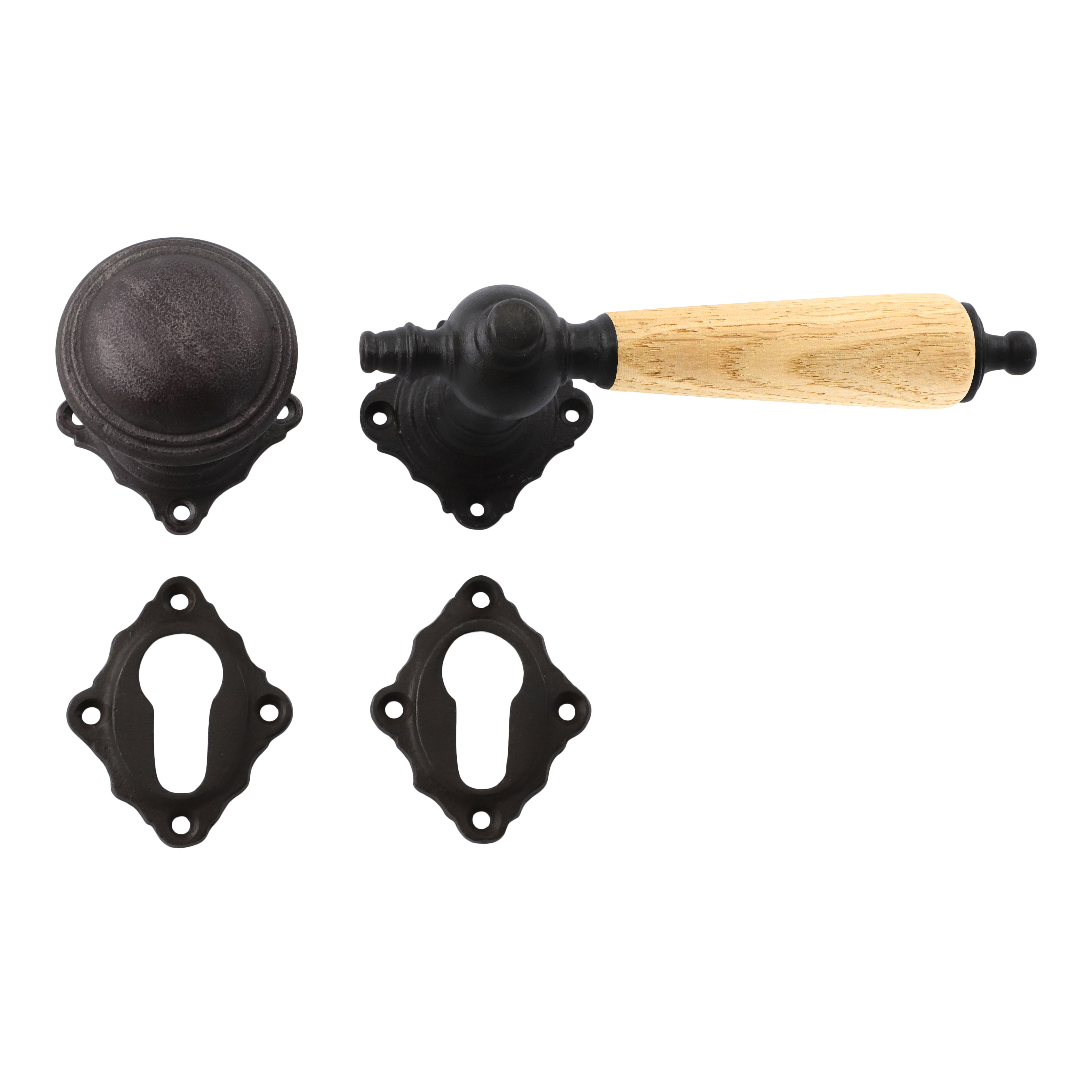 331.0012.60 Eingangstür-Garnitur Türgriffe mit Knauf Historismus-Stil Eisen antik