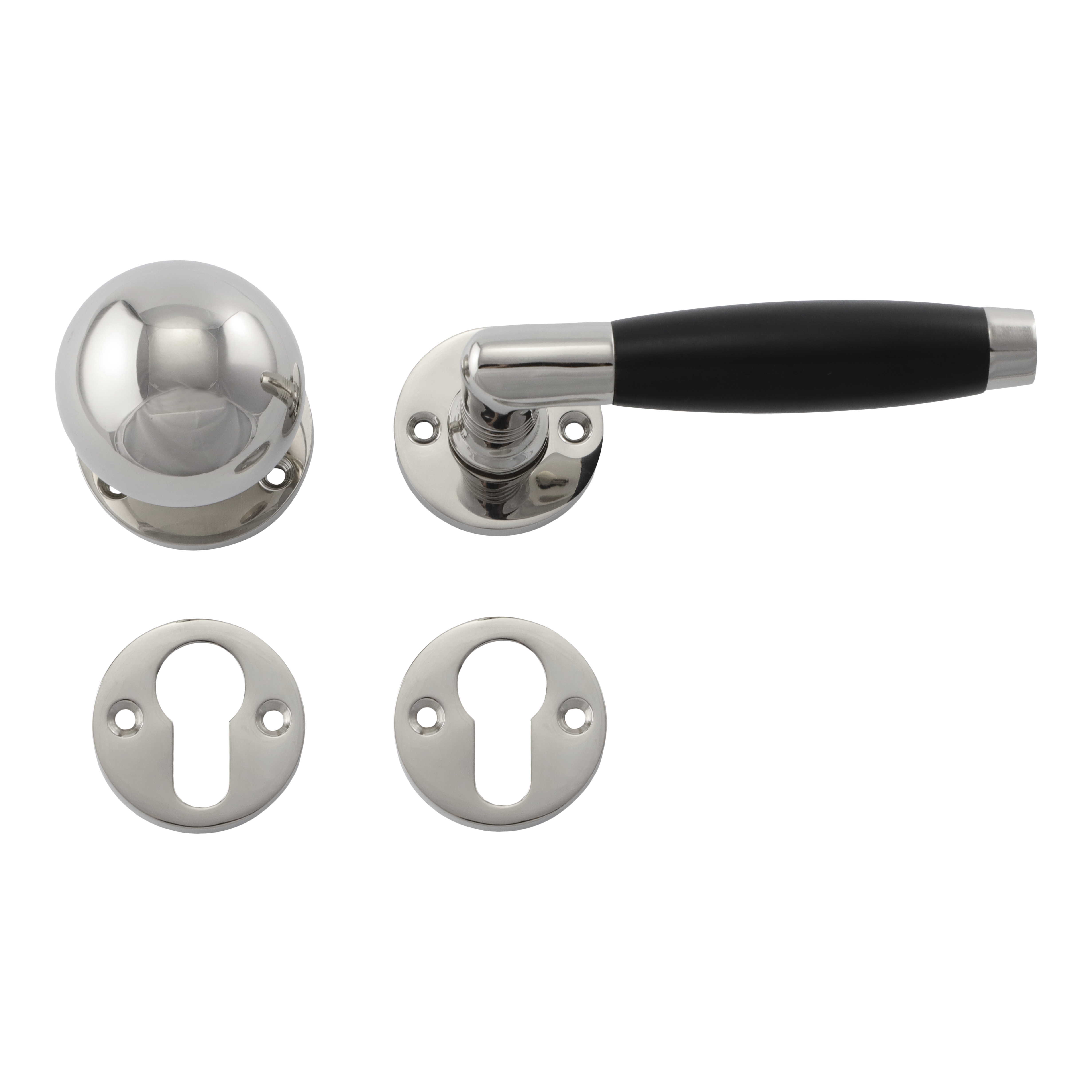Produktinformationen "331.0016.10 Haustür-Garnitur Türgriffe mit Knauf Jugendstil Nickel poliert DIN links"