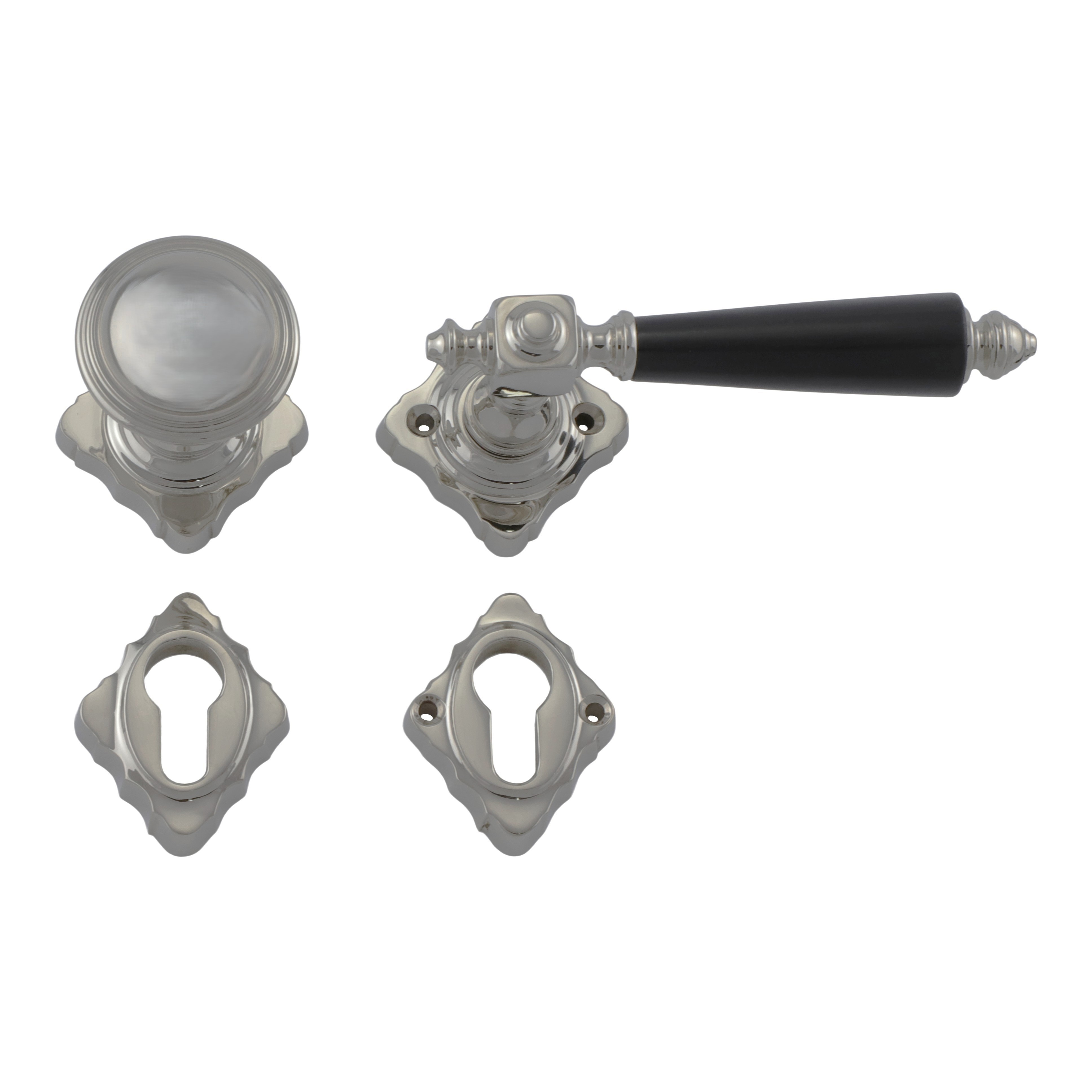 331.0040.15 Haustür-Garnitur Türgriffe mit Knauf Historismus Nickel matt