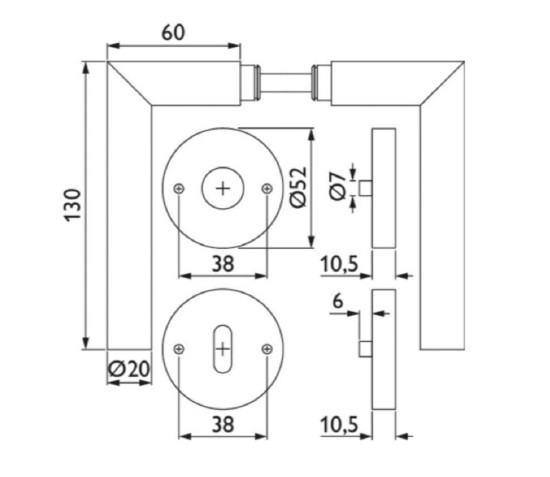 - - glatte Oberfläche - Rosettendurchmesser: 52 mm