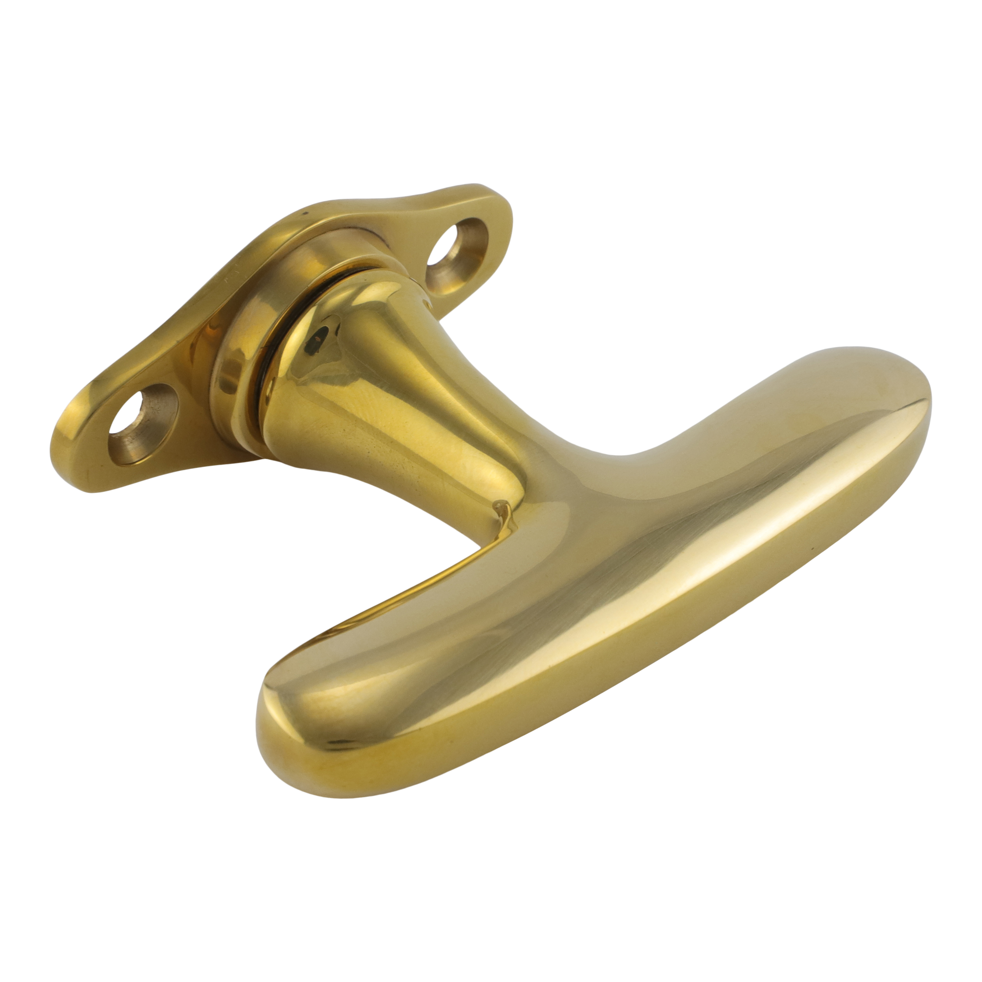 Polierter Fenstergriff aus Messing nach DIN-Norm, für alte und neue Fenster. Es handelt sich bei diesem eleganten Fenstergriff um eine authentische Reproduktion nach historischem Vorbild.