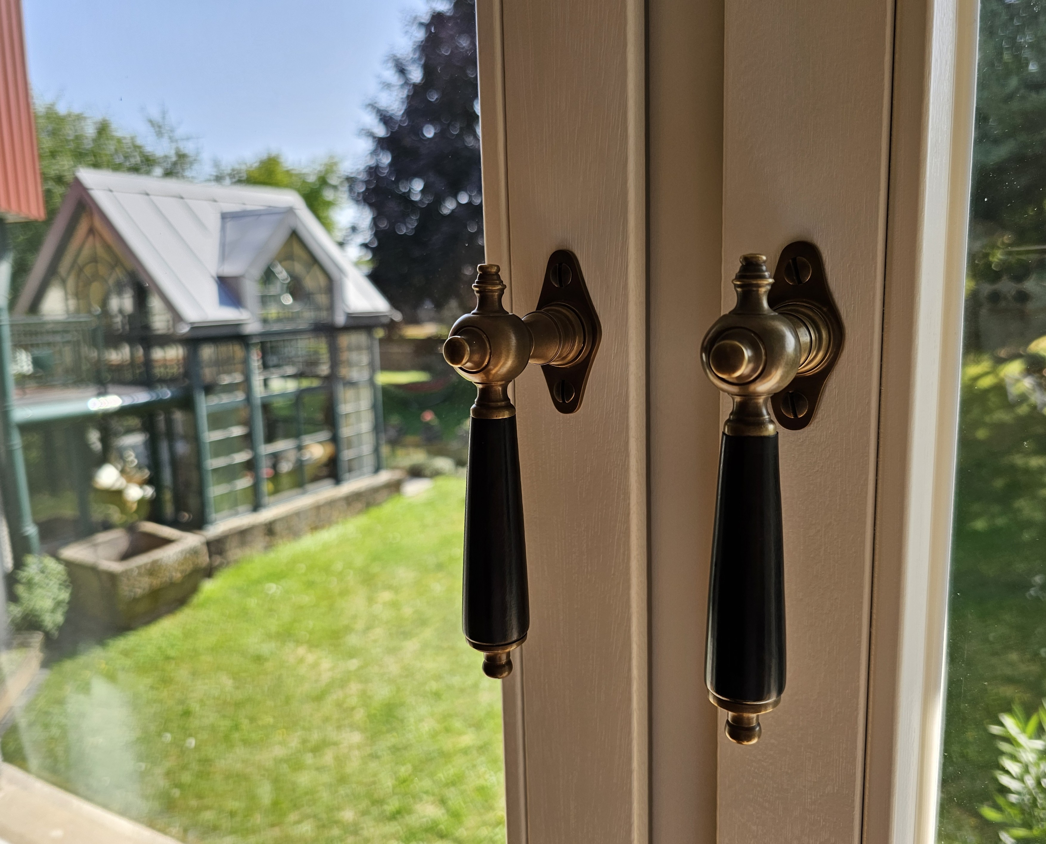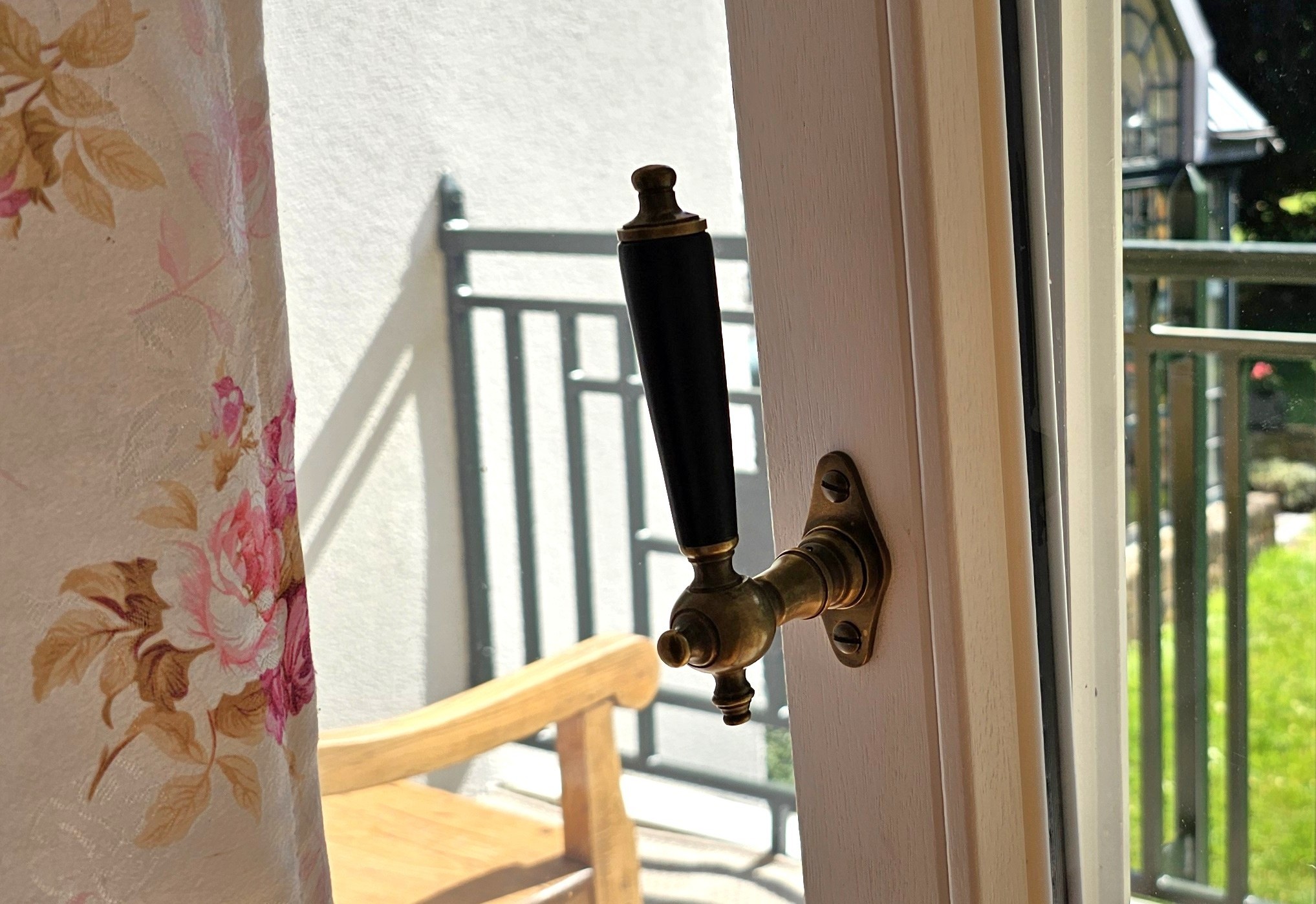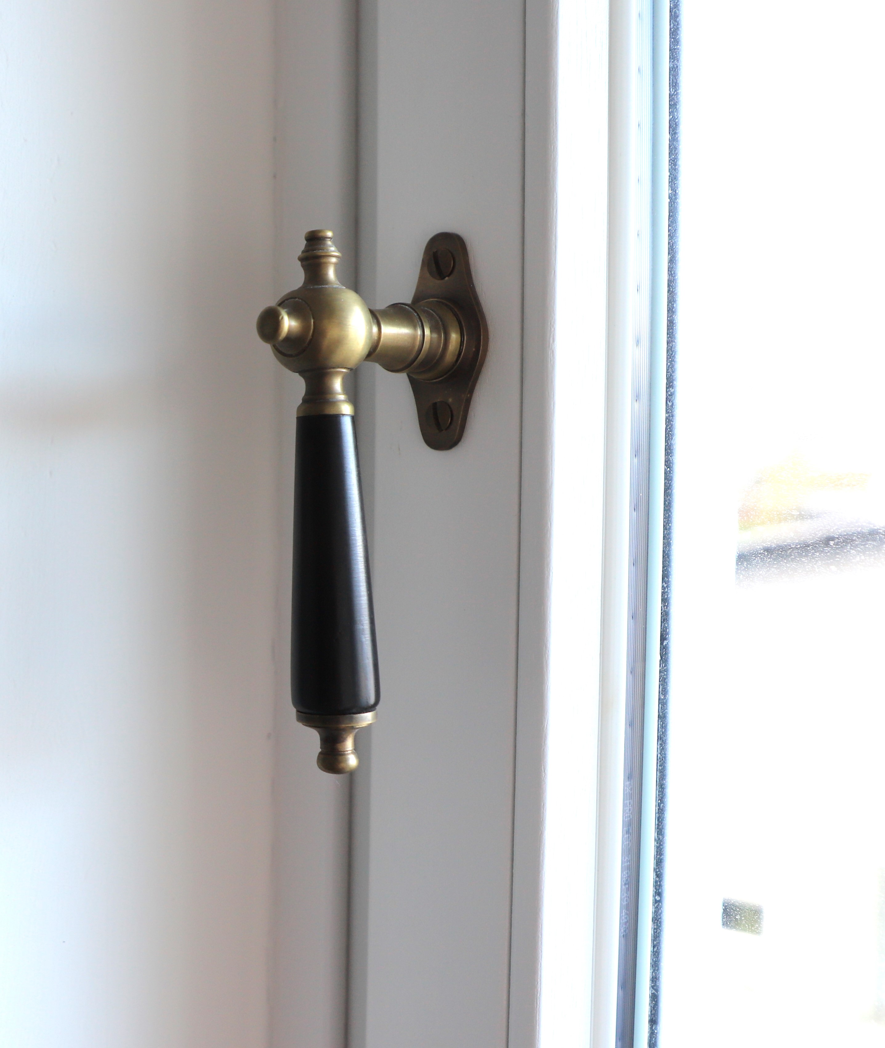 Eigenschaften "420.0017.45 Fenstergriff im Historismus Stil aus Messing patiniert - antike Fensterbeschläge, Fenstergriffe"