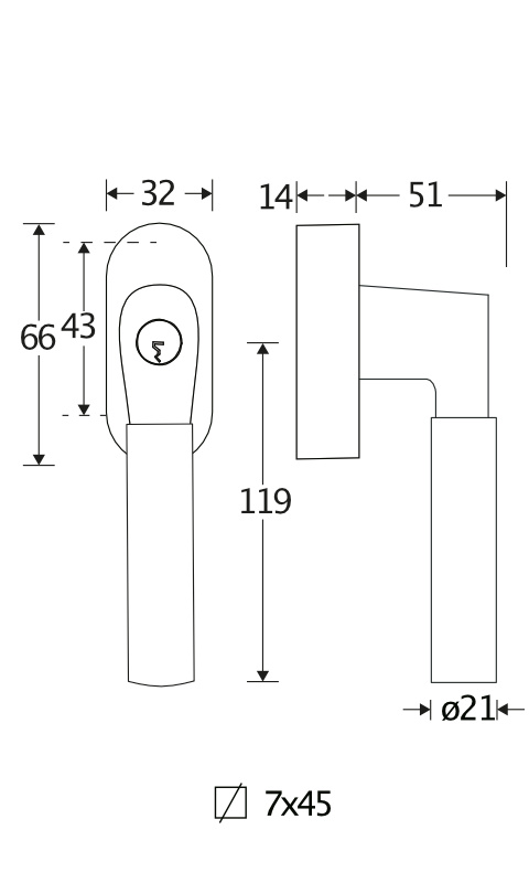 1 Fenstergriff abschließbar inkl. Rasterung, fest montiert2 Schlüssel