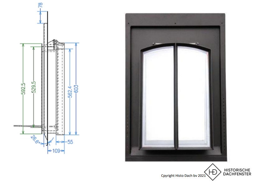 510.0001.70 Dachfenster DRK 40 x 60 cm (Fensterteil) Oben Rundbogen Vertikale Einteilung Eisen pulverbeschichtet